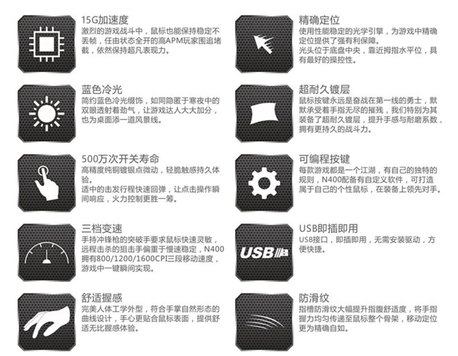 新贵N400 有线 游戏鼠标 笔记本台式机 usb 发光