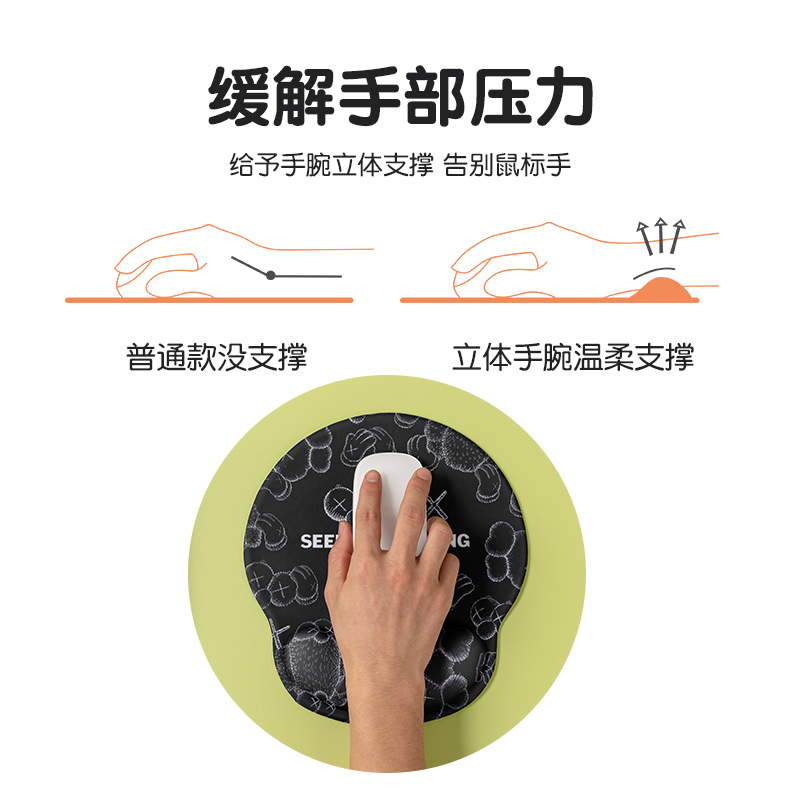 kaws芝麻街护腕鼠标垫男生游戏电竞创意记忆硅胶3D胸办公桌垫软垫腕托手托防滑笔记本电脑键盘垫女生小号加厚
