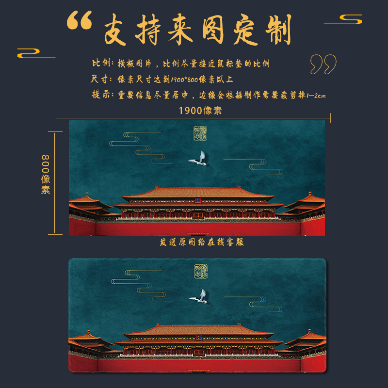 • 商品名称:鼠标垫超大号中国风国潮宫廷风加厚锁边个性创意办公桌桌面垫书桌垫写字台桌垫学生宿舍家用游戏电竞软垫定制