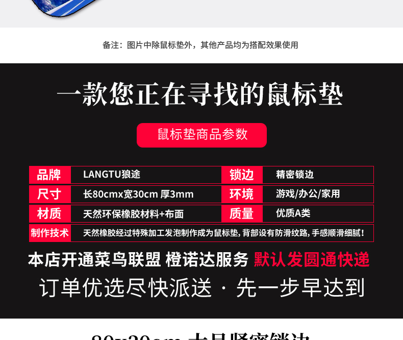 • 商品名称:办公鼠标垫超大加厚锁边风景创意可爱动漫小号电脑笔记本家用桌垫