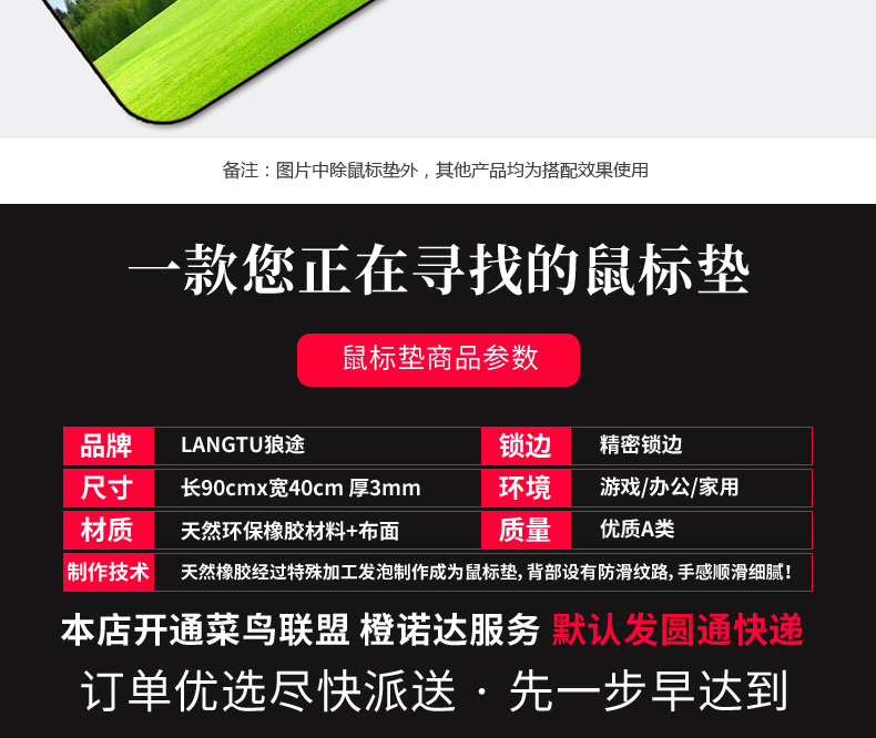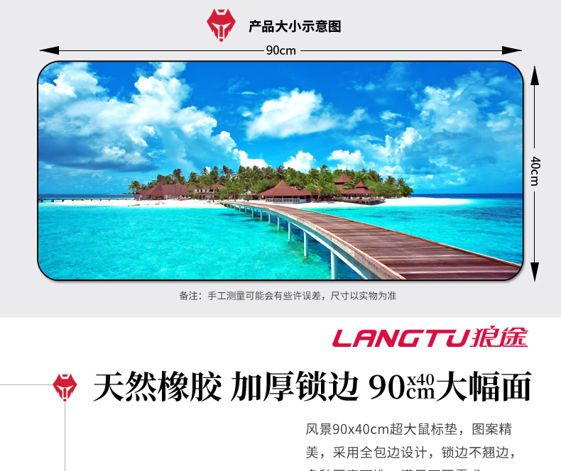 • 商品名称:家用风景鼠标垫超大号90x40锁边加厚办公可爱笔记本电脑写字桌垫