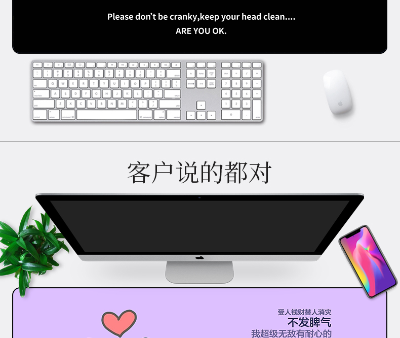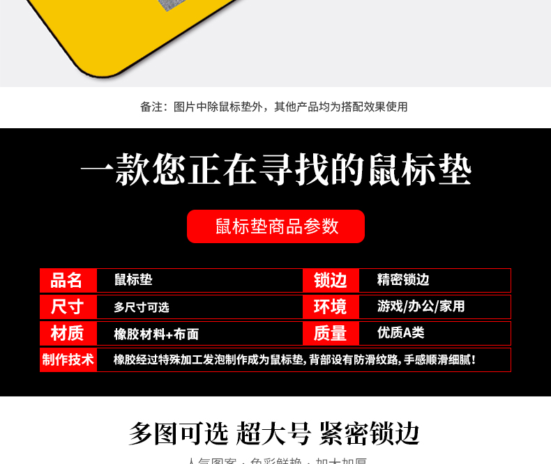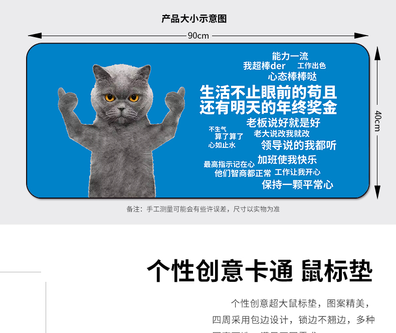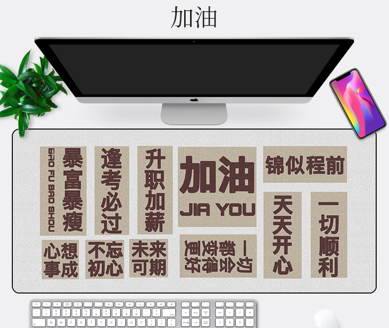 • 商品名称:游戏鼠标垫超大号加厚锁边定制可爱励志男女生个性键盘垫办公桌垫