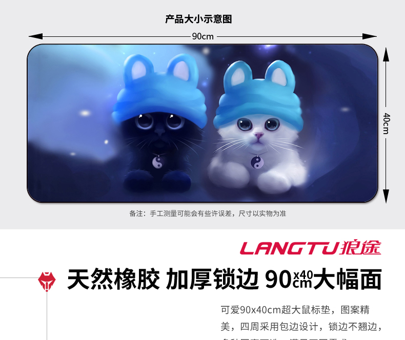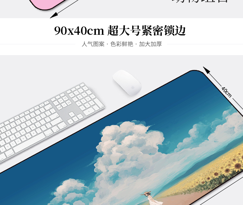 • 商品名称:鼠标垫超大号可爱女生笔记本键盘垫锁边办公加厚卡通家用学生桌垫