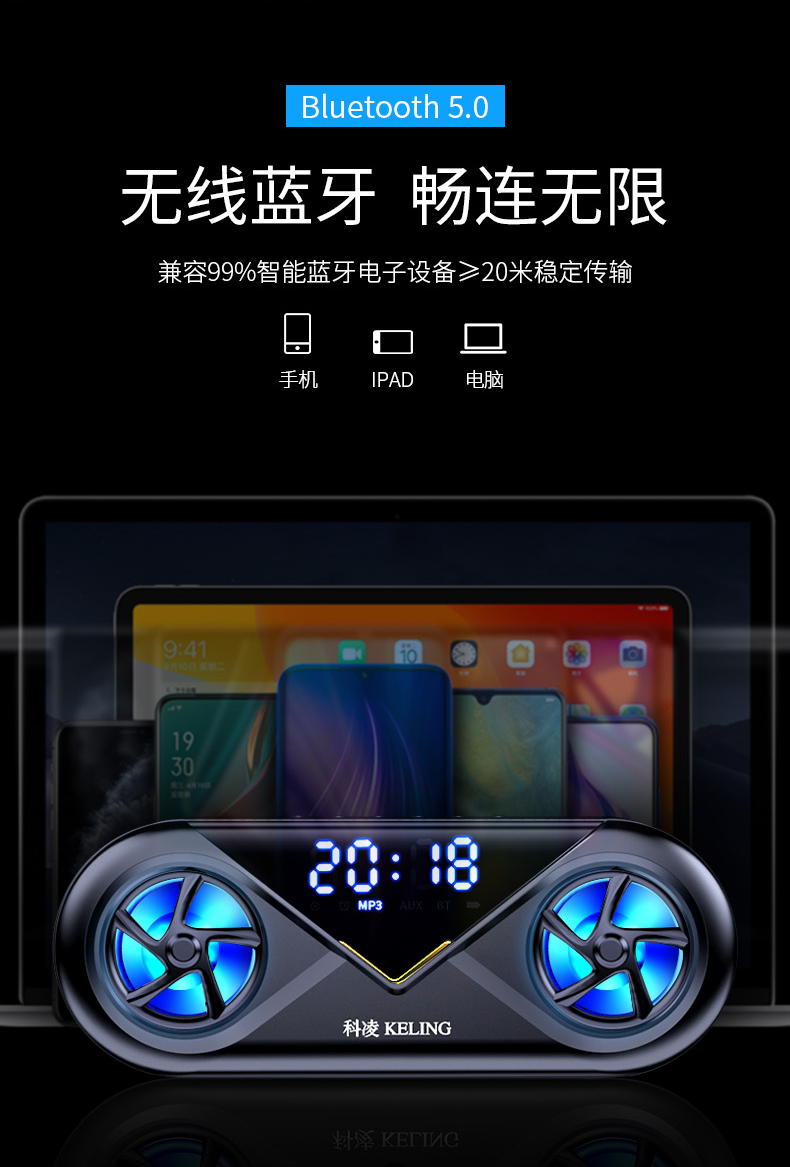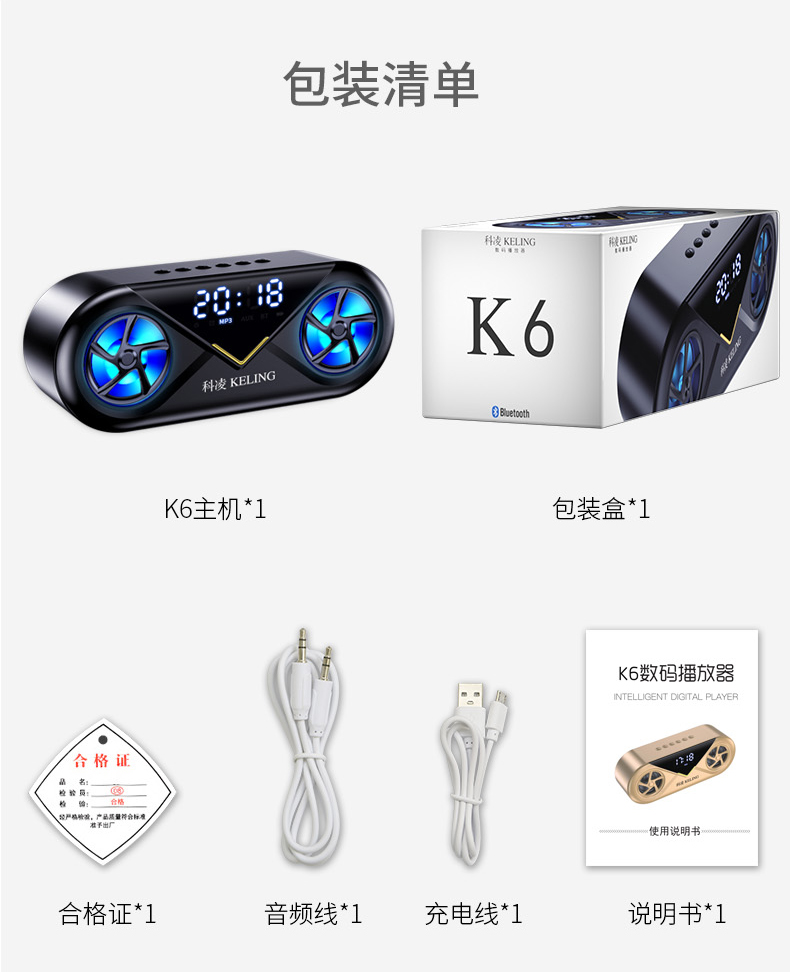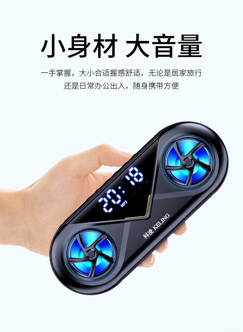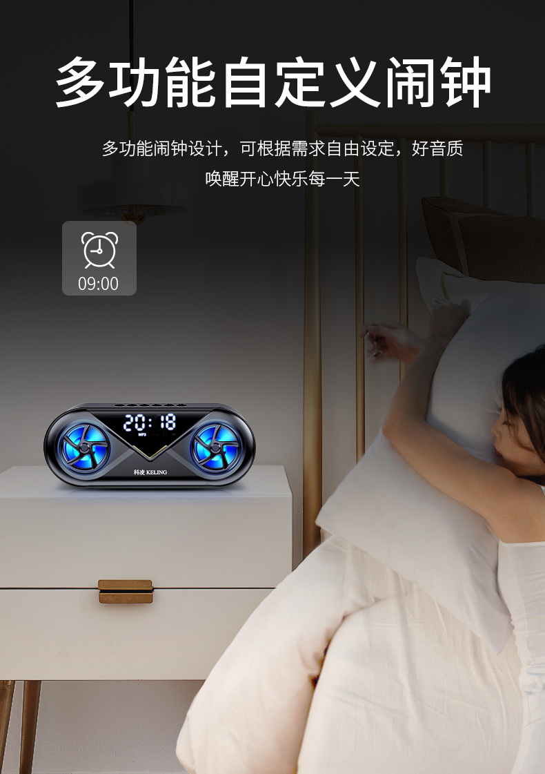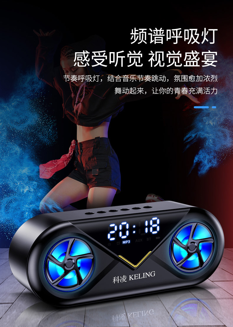 • 商品名称:科凌无线蓝牙音箱双喇叭大音量3D环绕家用闹钟小型迷你音响手机超重低音炮便携式户外车载收款收钱语音播报器