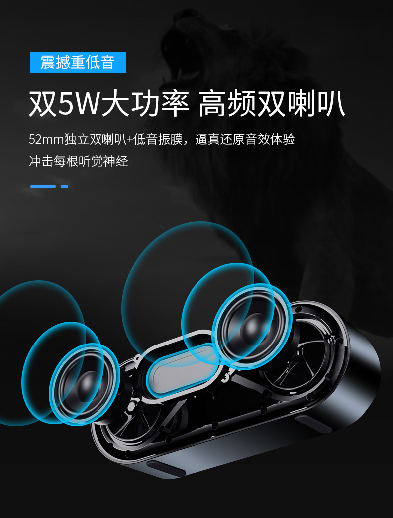 科凌无线蓝牙音箱双喇叭大音量3D环绕家用闹钟小型迷你音响手机超重低音炮便携式户外车载收款收钱语音播报器