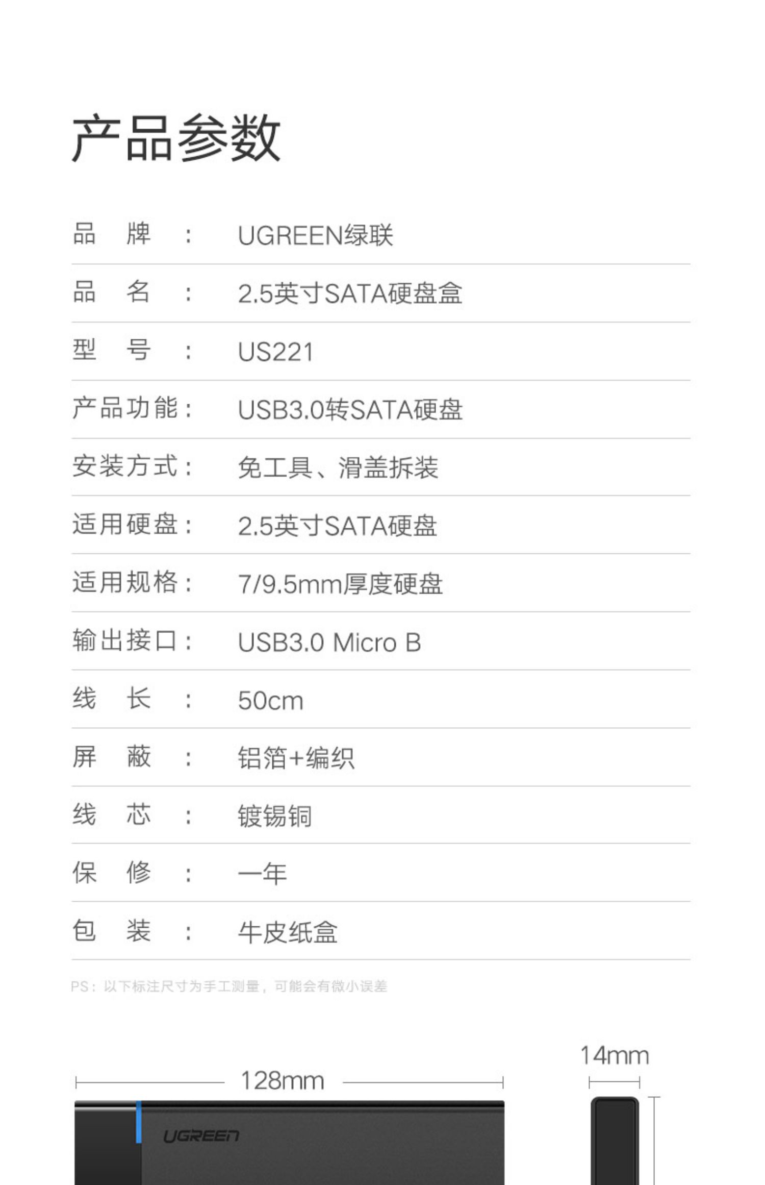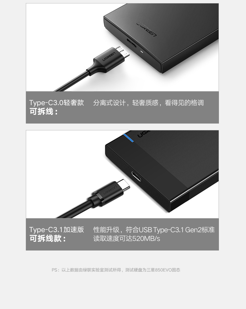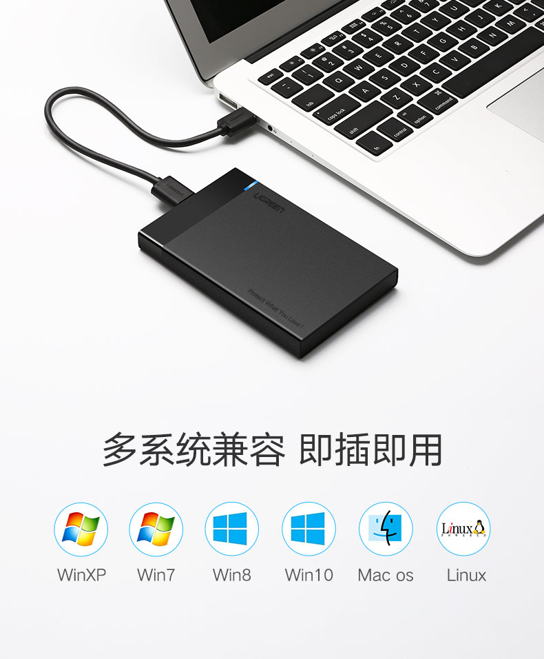 • 商品名称:绿联移动硬盘盒2.5英寸通用外接usb3.0/3.1type-c外置读取保护壳台式机笔记本电脑sata机械ssd固态改硬盘盒子