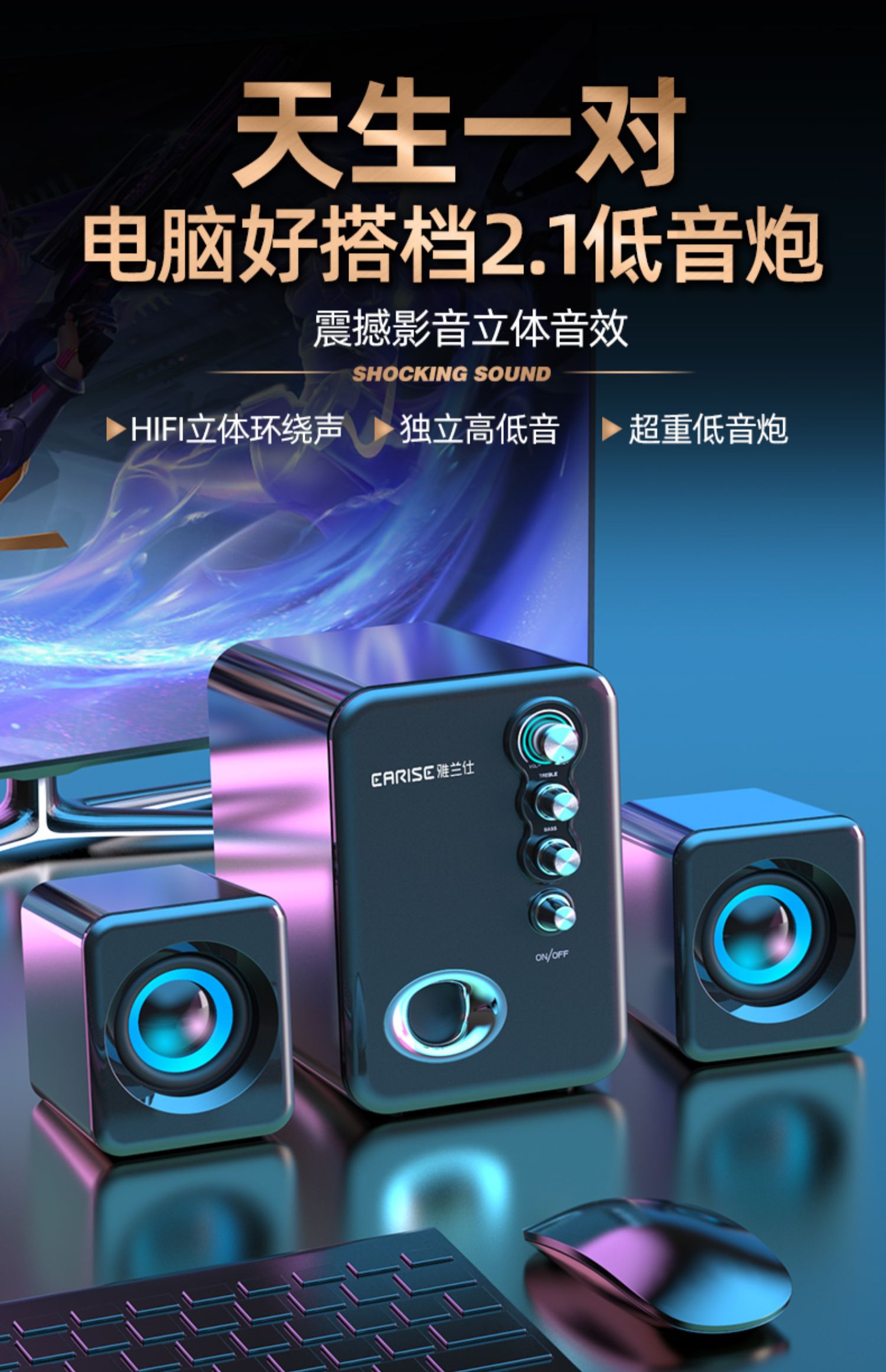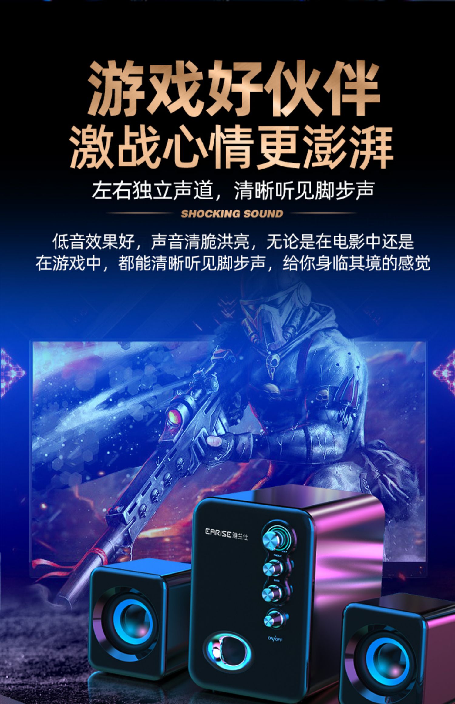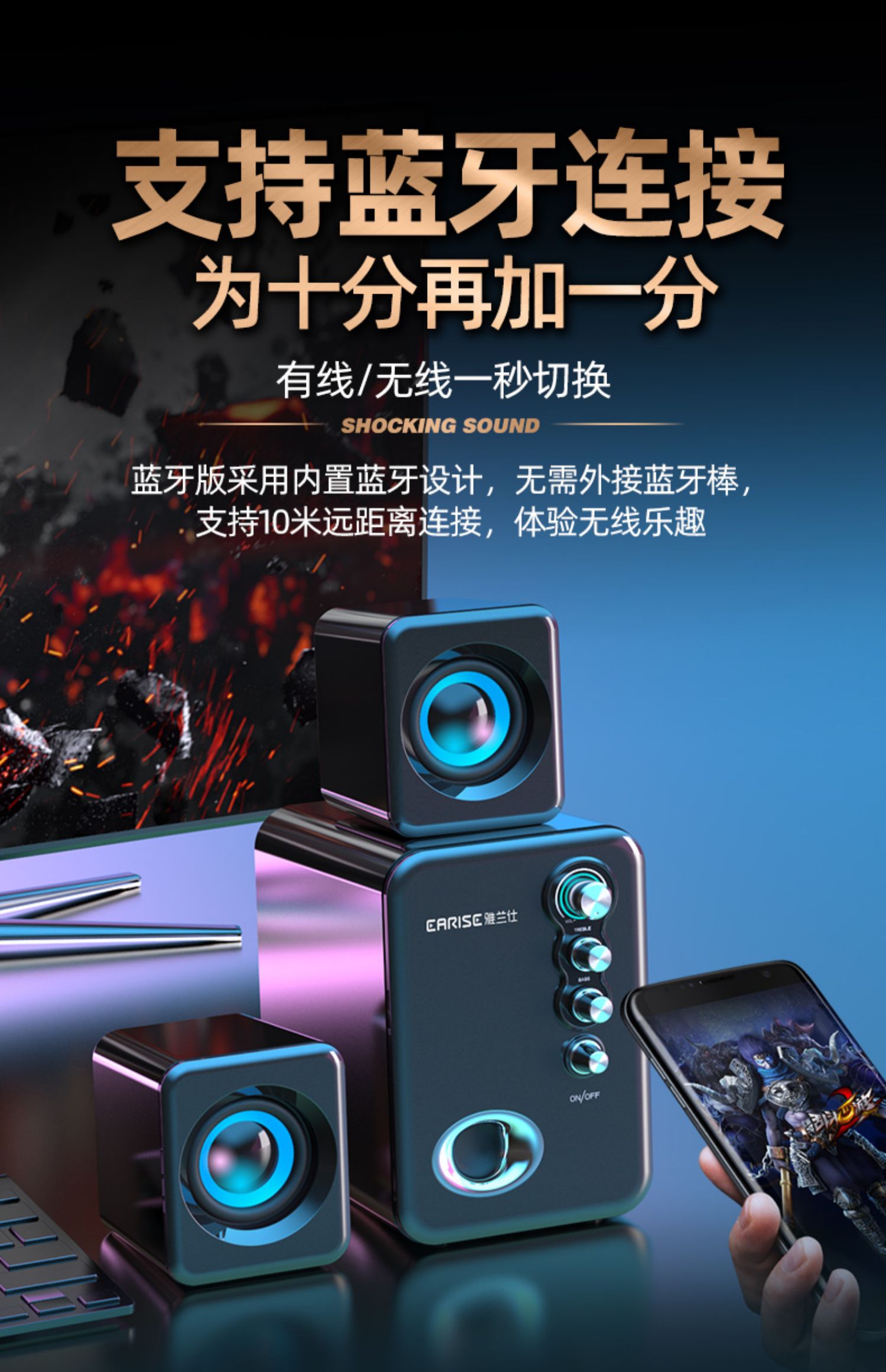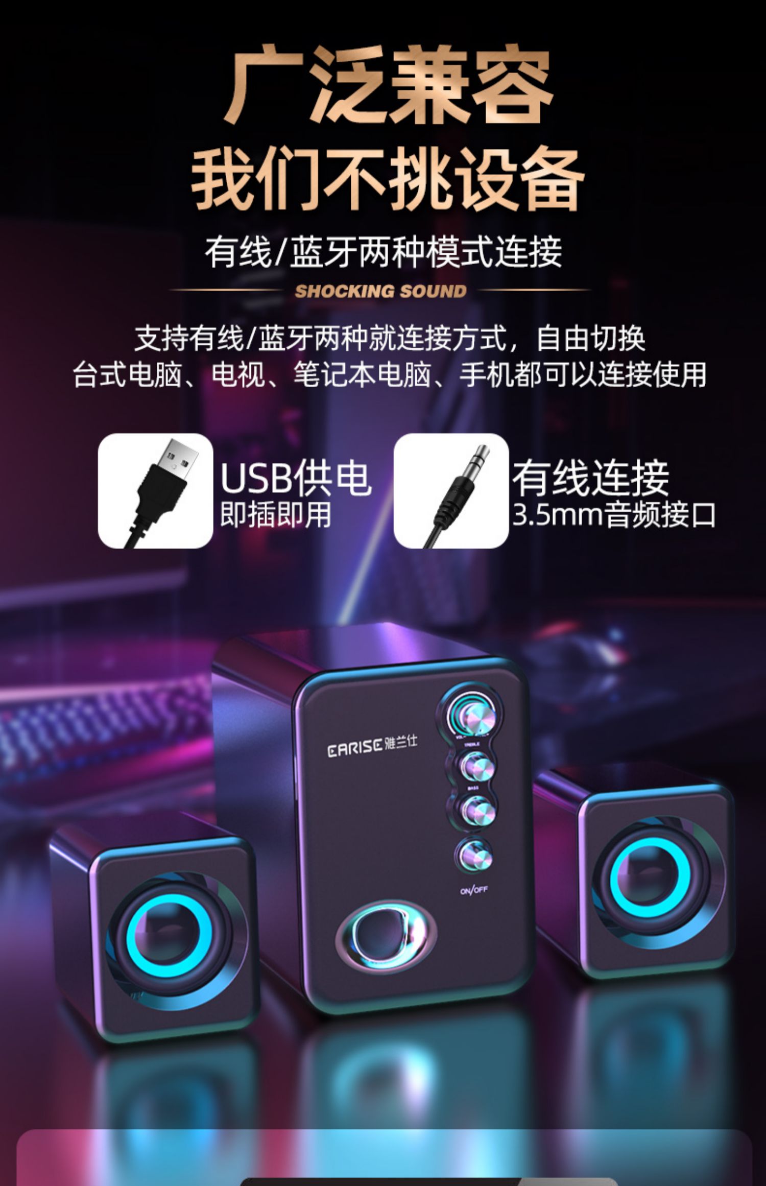 • 商品名称:EARISE/雅兰仕Q8音响电脑音响台式机家用小音箱迷你超重低音炮影响有线USB2.1多媒体蓝牙有源喇叭通用