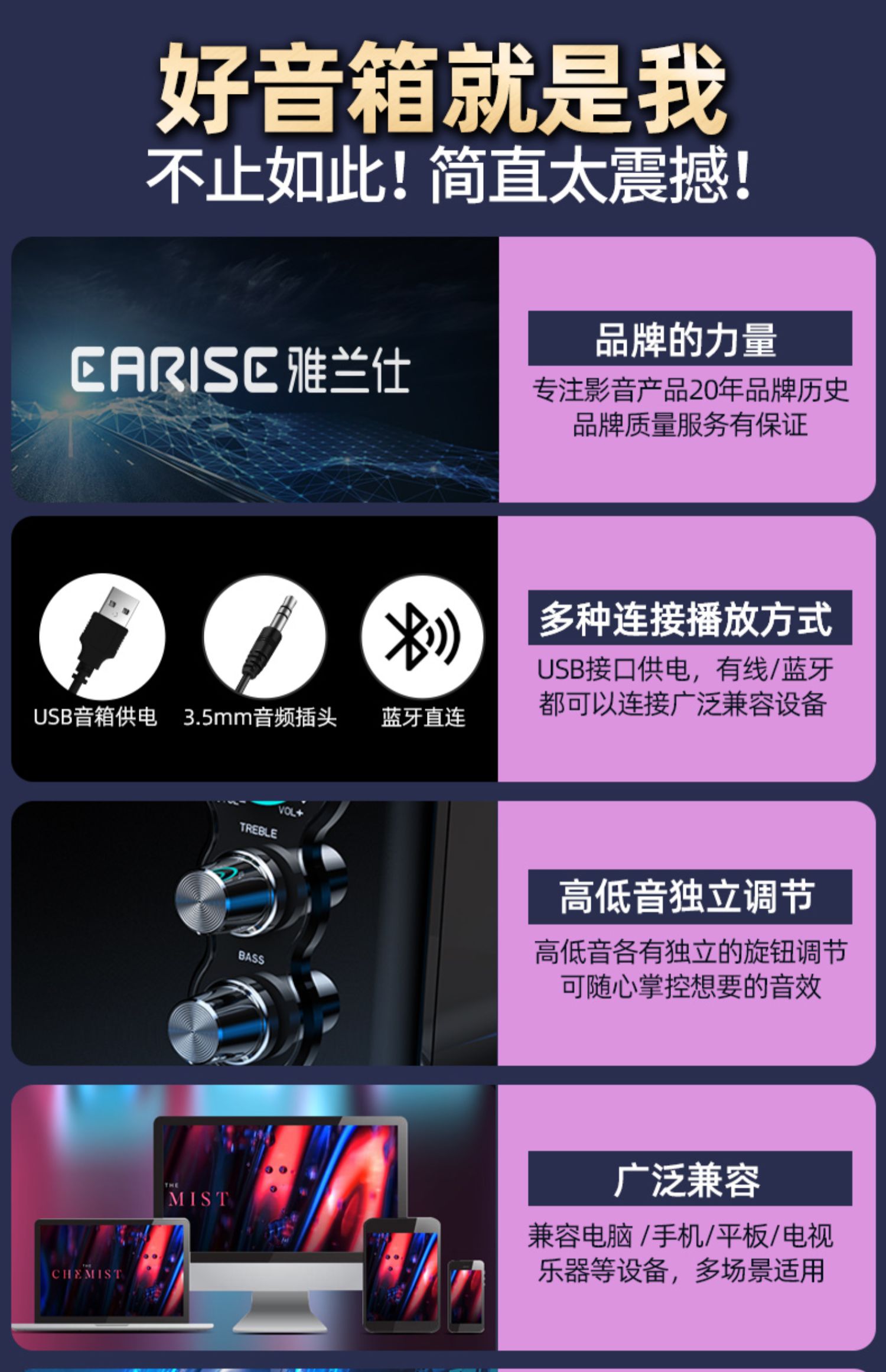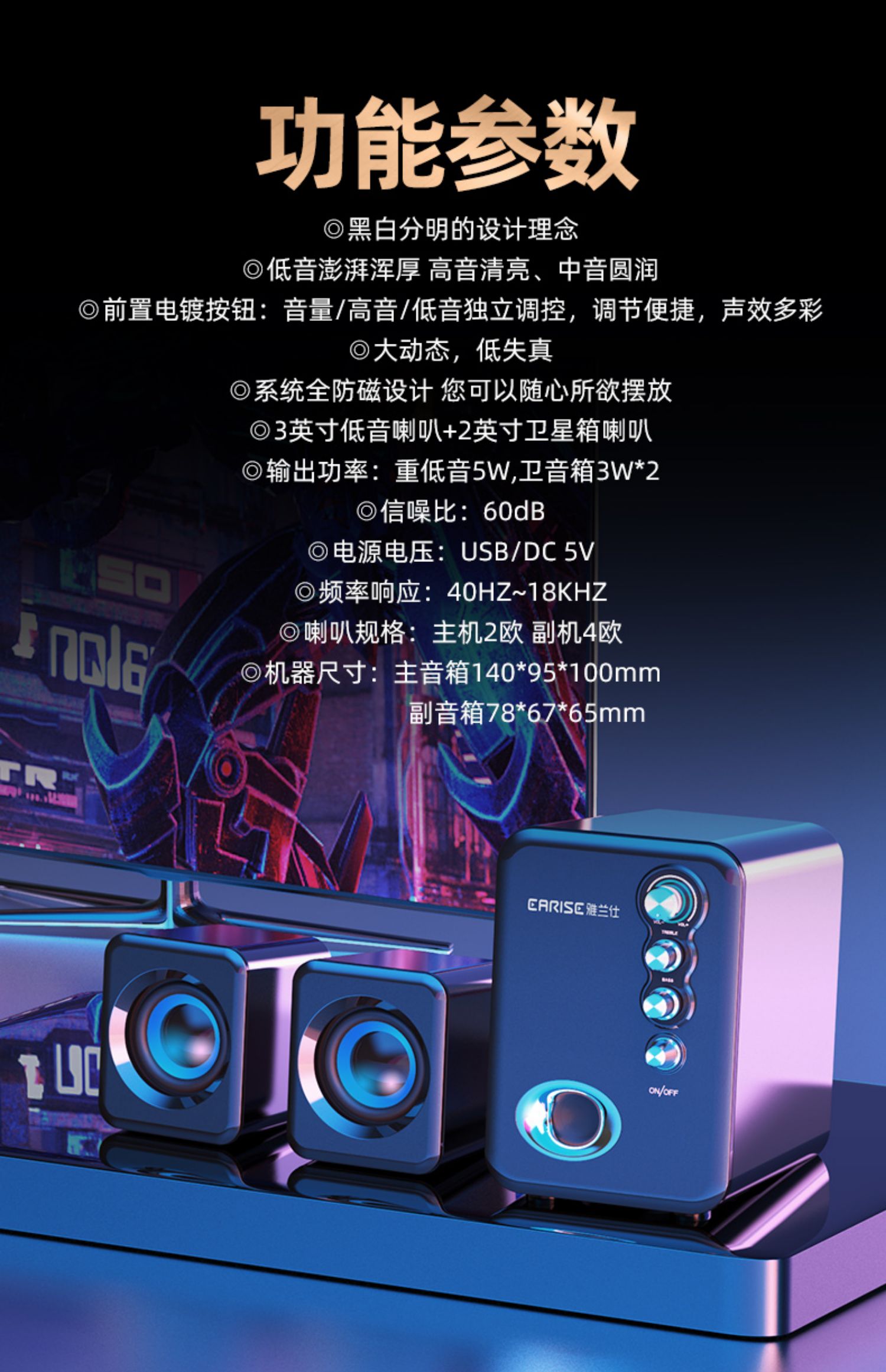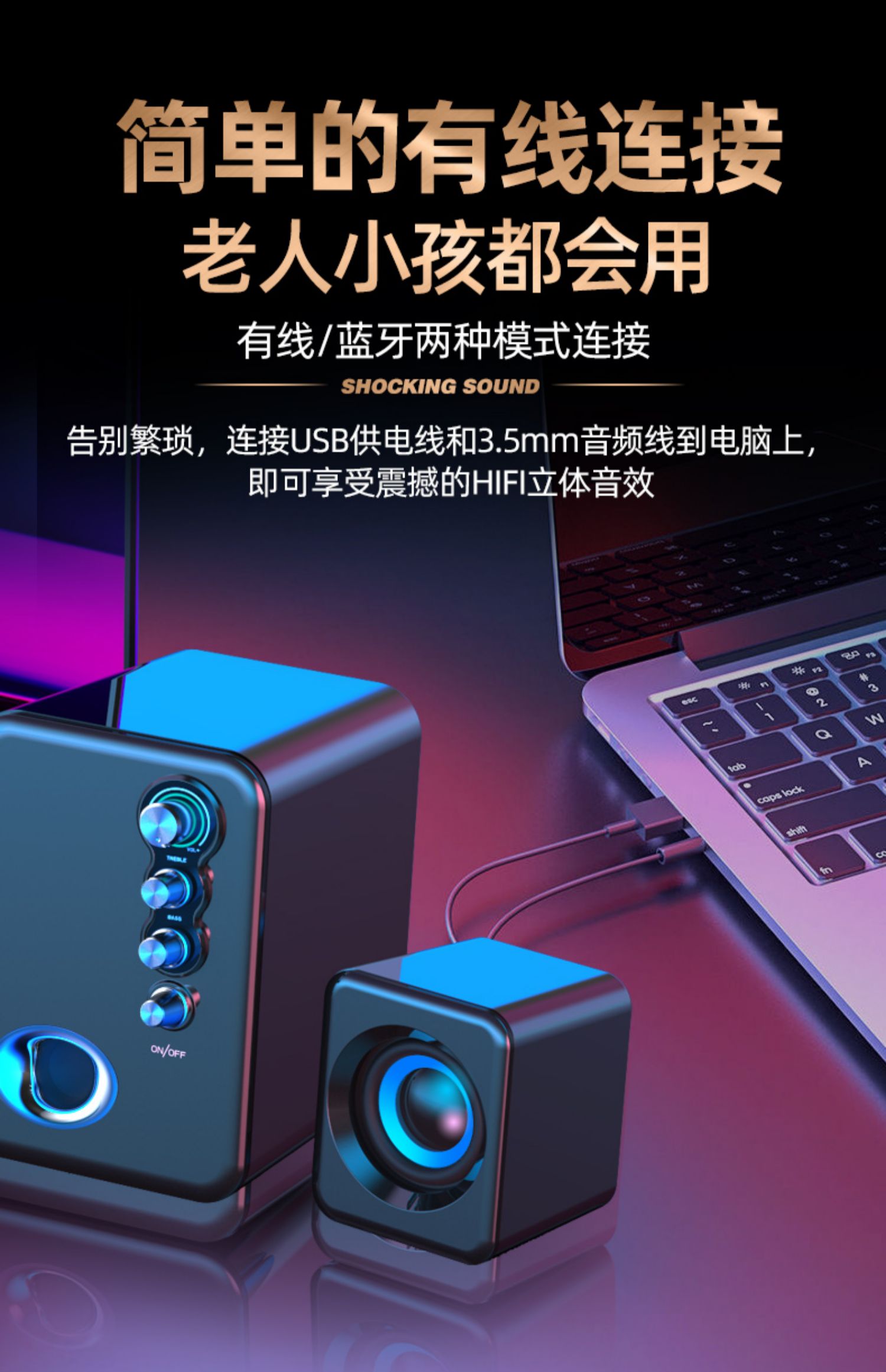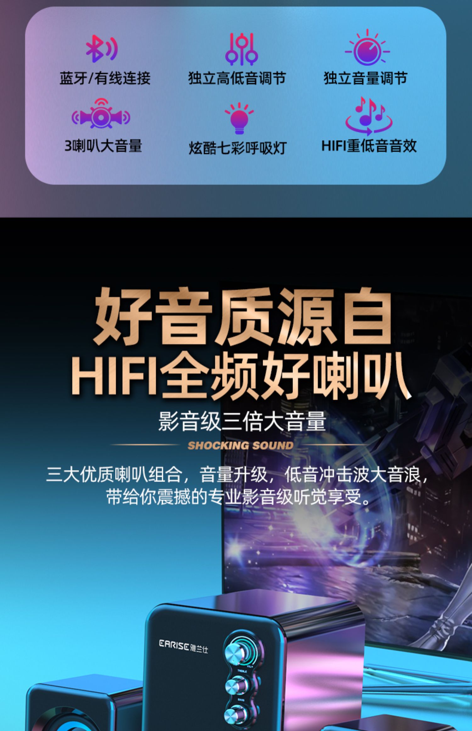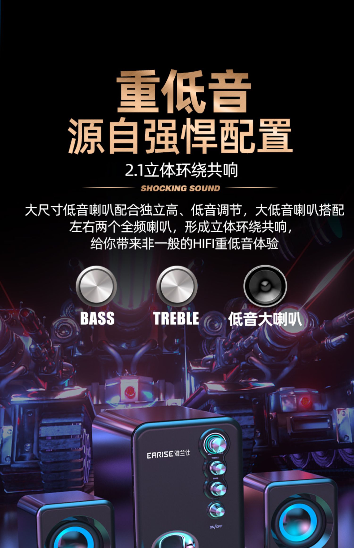 • 商品名称:EARISE/雅兰仕Q8音响电脑音响台式机家用小音箱迷你超重低音炮影响有线USB2.1多媒体蓝牙有源喇叭通用