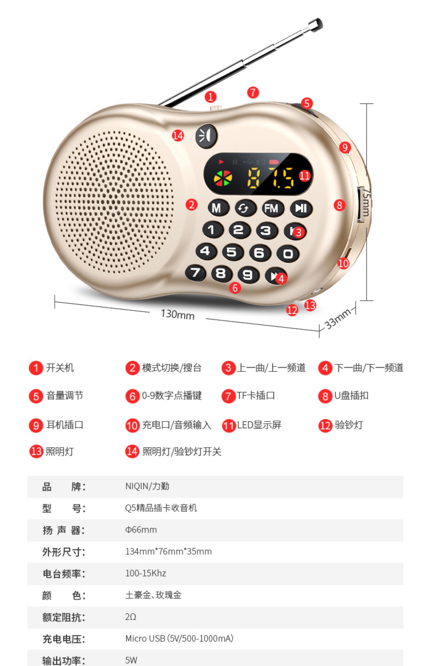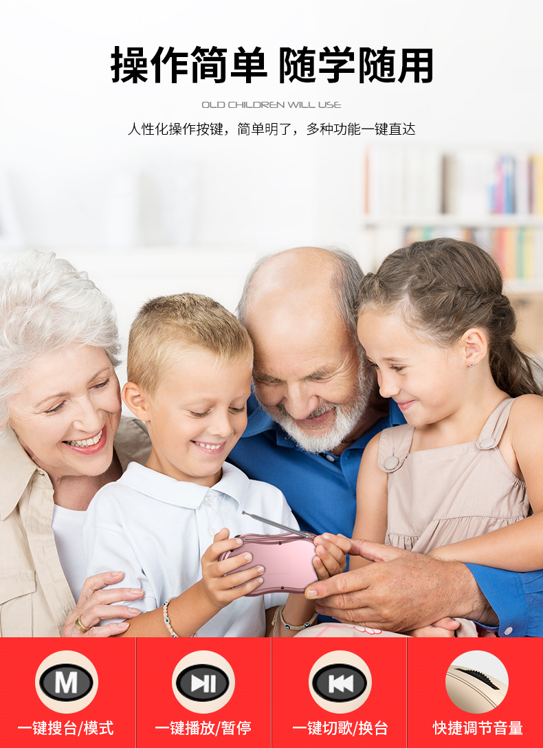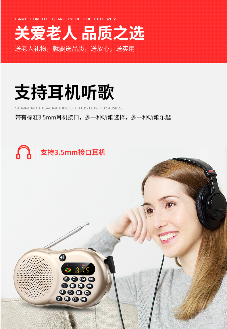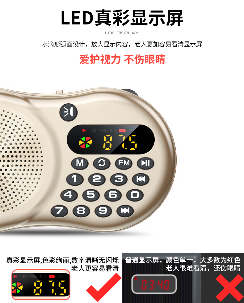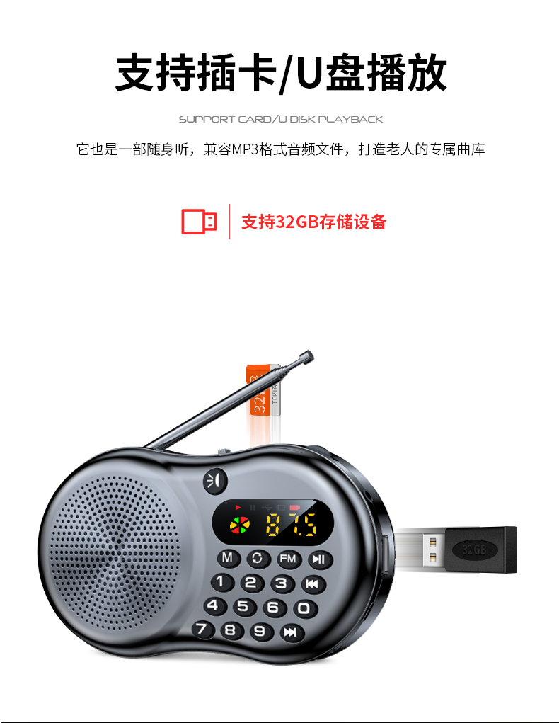 • 商品名称:力勤收音机老人专用新款便携式小型迷你u盘插卡音响多功能随身听老年人半导体充电评书唱戏听戏曲播放器音箱