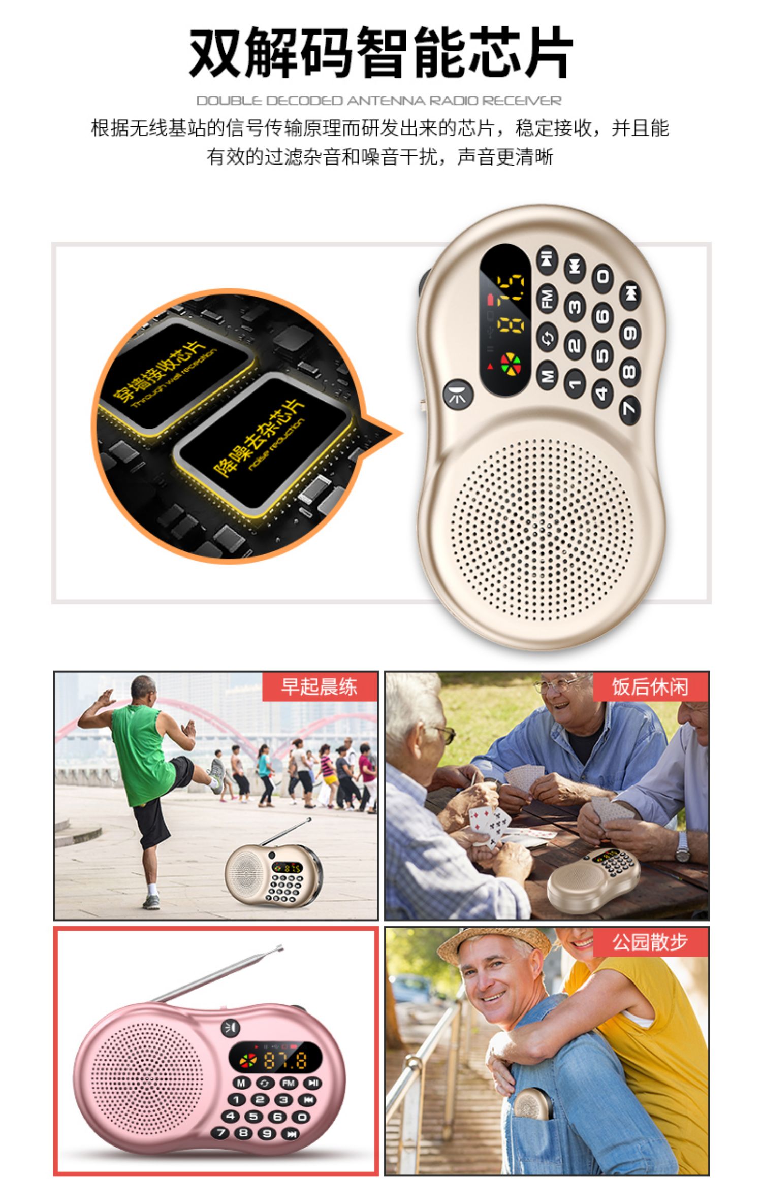 力勤收音机老人专用新款便携式小型迷你u盘插卡音响多功能随身听老年人半导体充电评书唱戏听戏曲播放器音箱