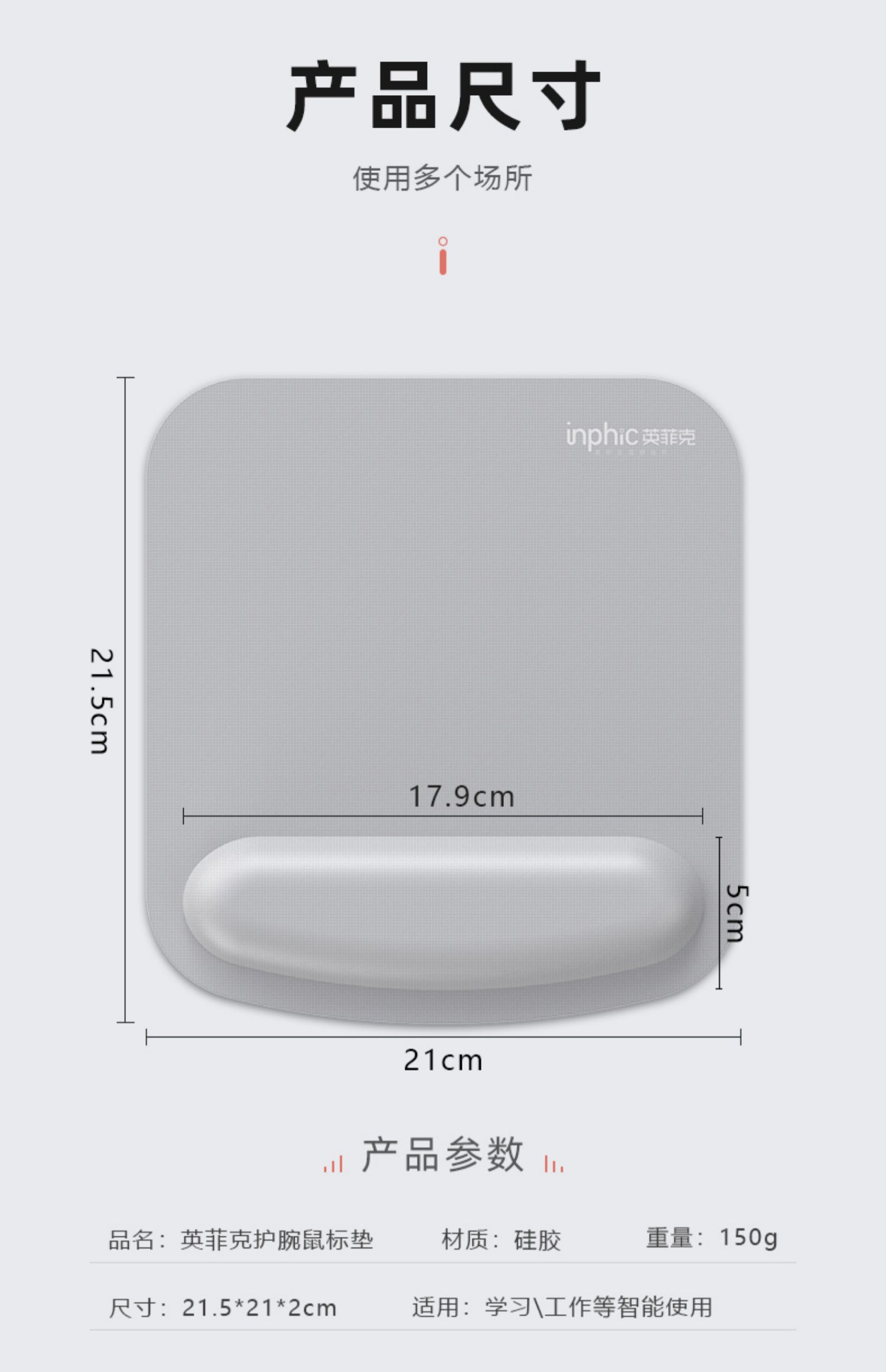 • 商品名称:英菲克鼠标垫护腕手腕垫记忆棉鼠标软垫手托垫3D胸加厚办公笔记本电脑滑鼠硅胶垫桌面电竞游戏防滑男女PD800