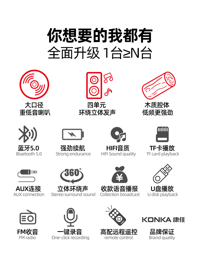 • 商品名称:康佳 A107广场舞音响户外小音箱家用客厅K歌环绕立体声低音炮双喇叭音响大音量迷你无线蓝牙音箱小型便携式