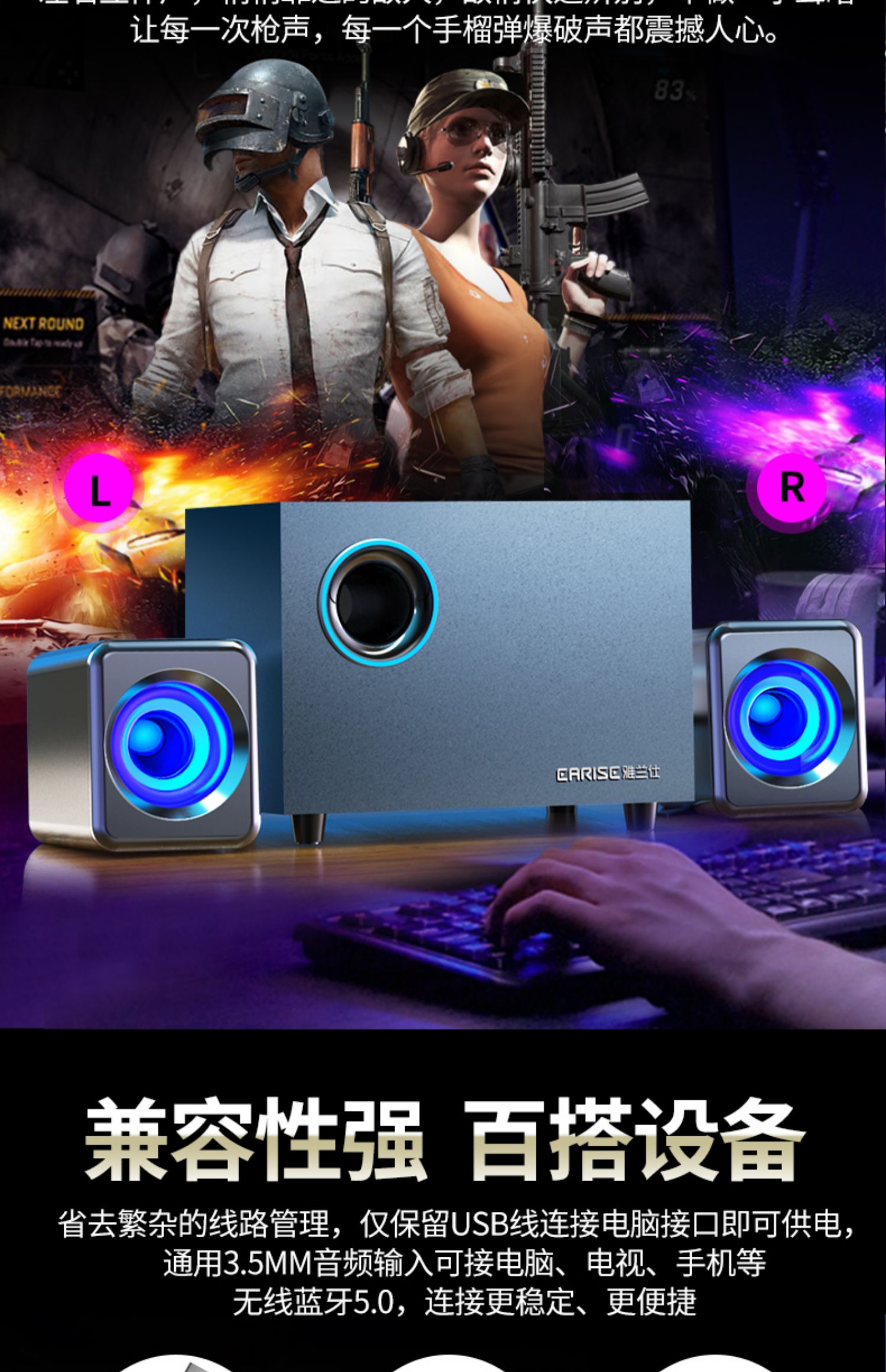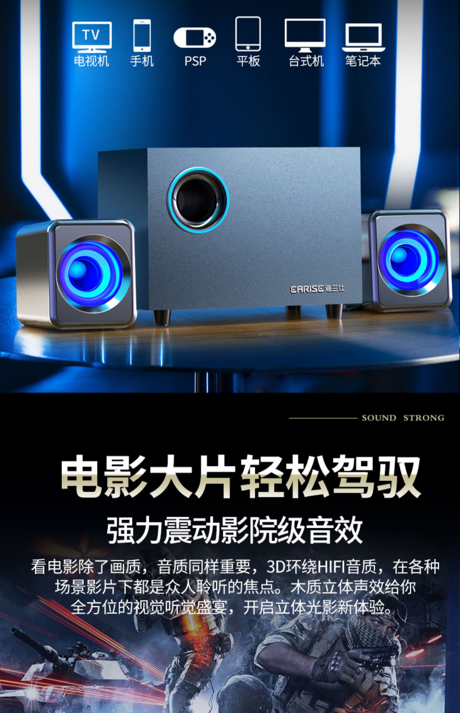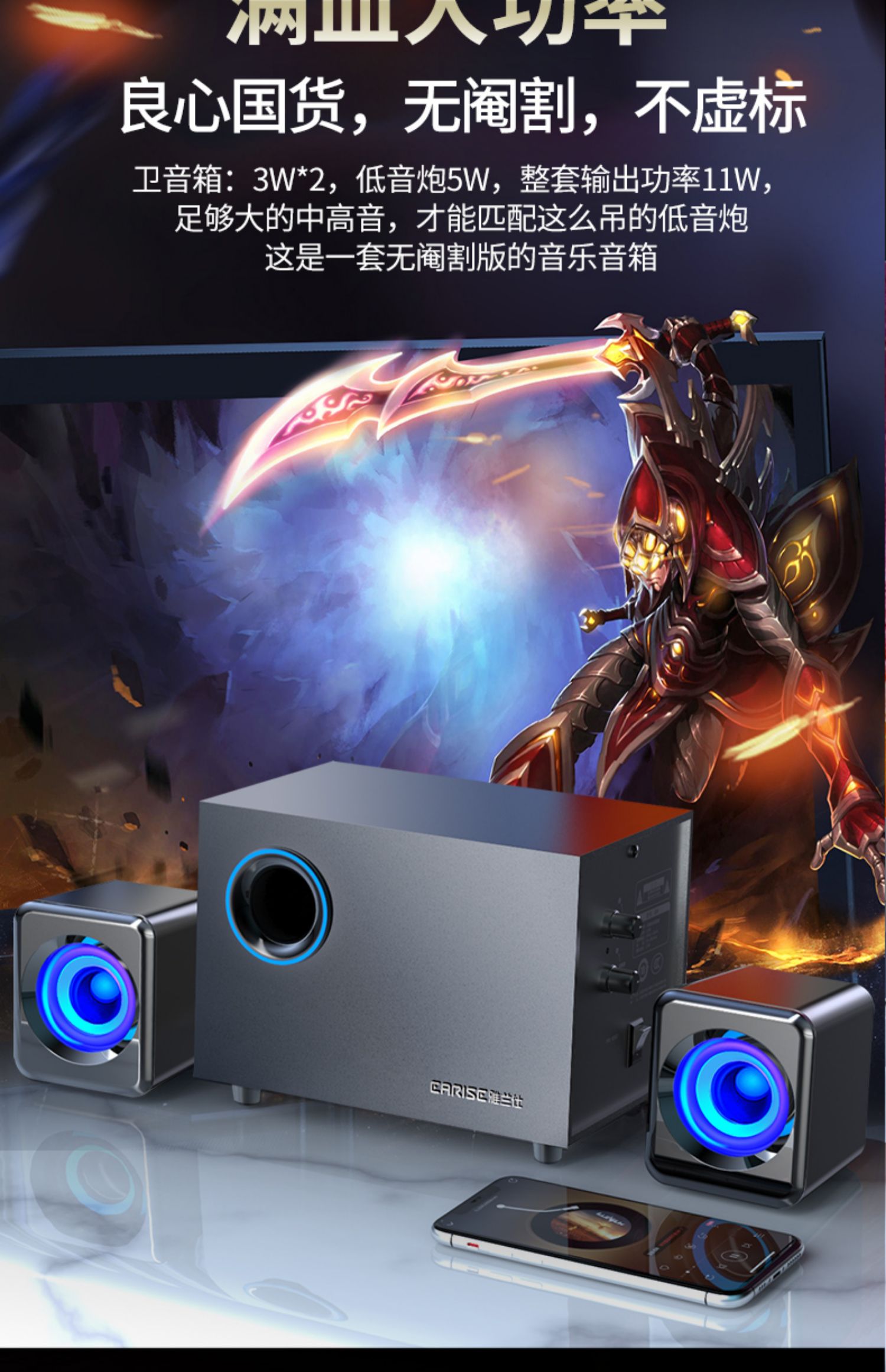 • 商品名称:EARISE/雅兰仕 Q9笔记本电脑音响 木质多媒体台式小音箱2.1低音炮