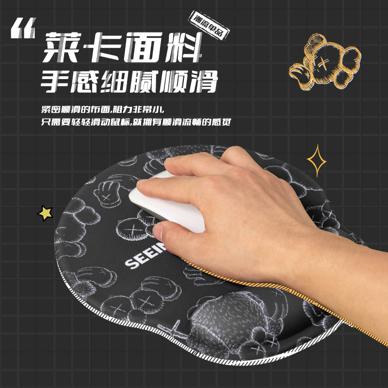 芝麻街kaws鼠标垫护腕创意男生卡通硅胶加大舒适软垫3d胸手托加厚游戏电脑办公可爱女ins风小号手腕垫滑鼠垫