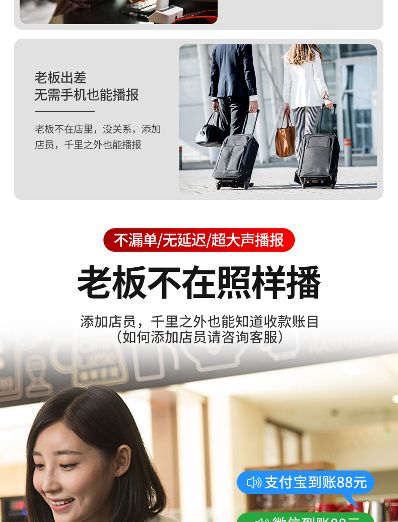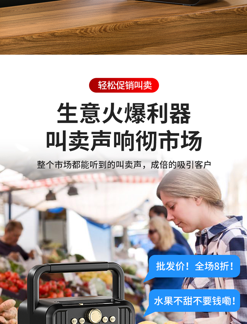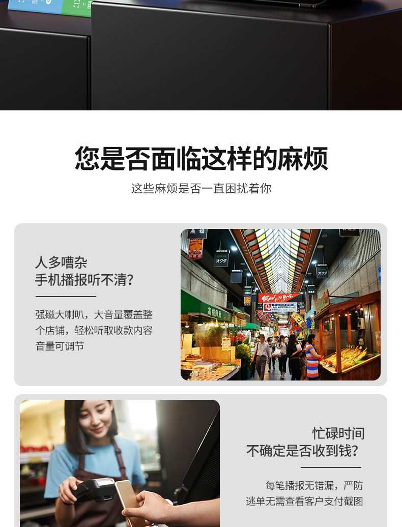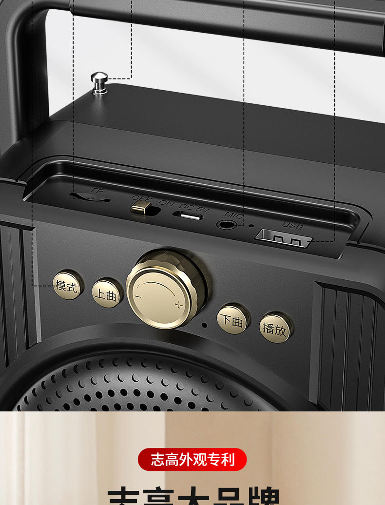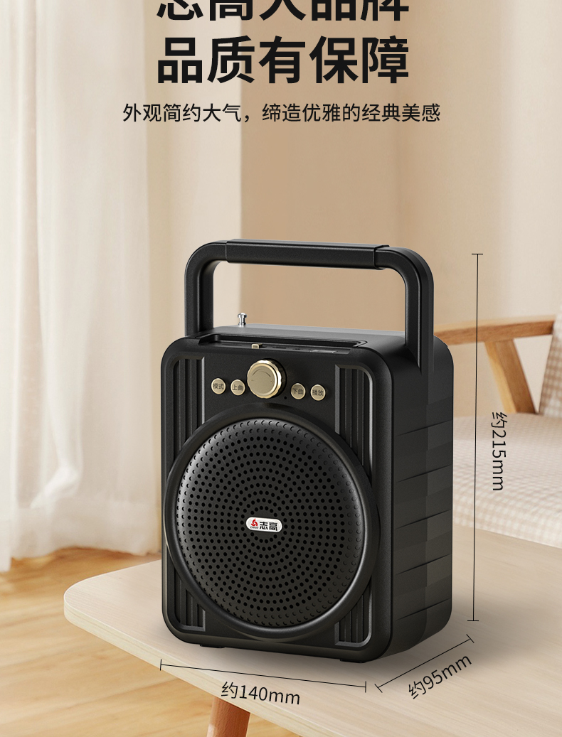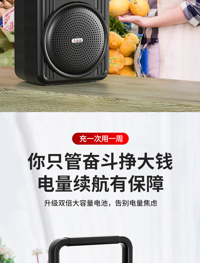 • 商品名称:菜市场店铺户外收款音响支付宝双喇叭大音量微信二维码收钱付款专用语音播报神器商家用无线蓝牙小型音箱志高
