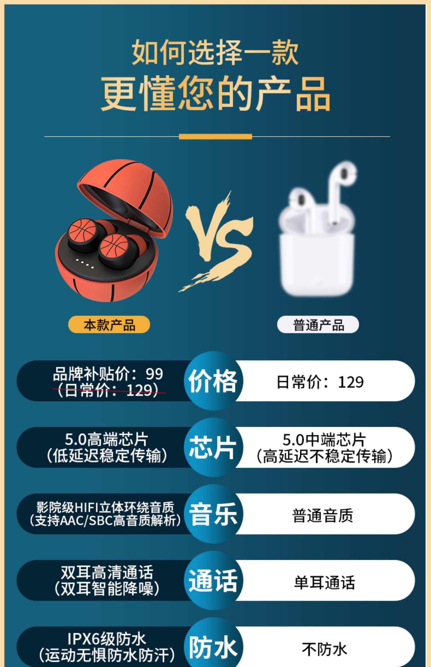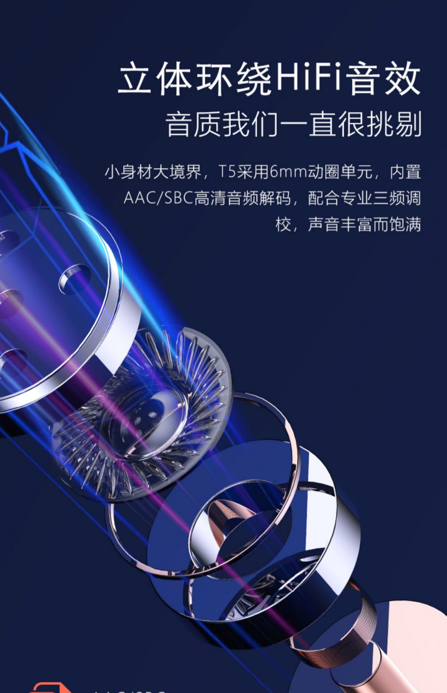• 商品名称:依魅T5篮球隐形蓝牙耳机游戏真无线智能微小型高颜值迷你耳机跑步运动防水入耳式超长续航充电新款降噪通话