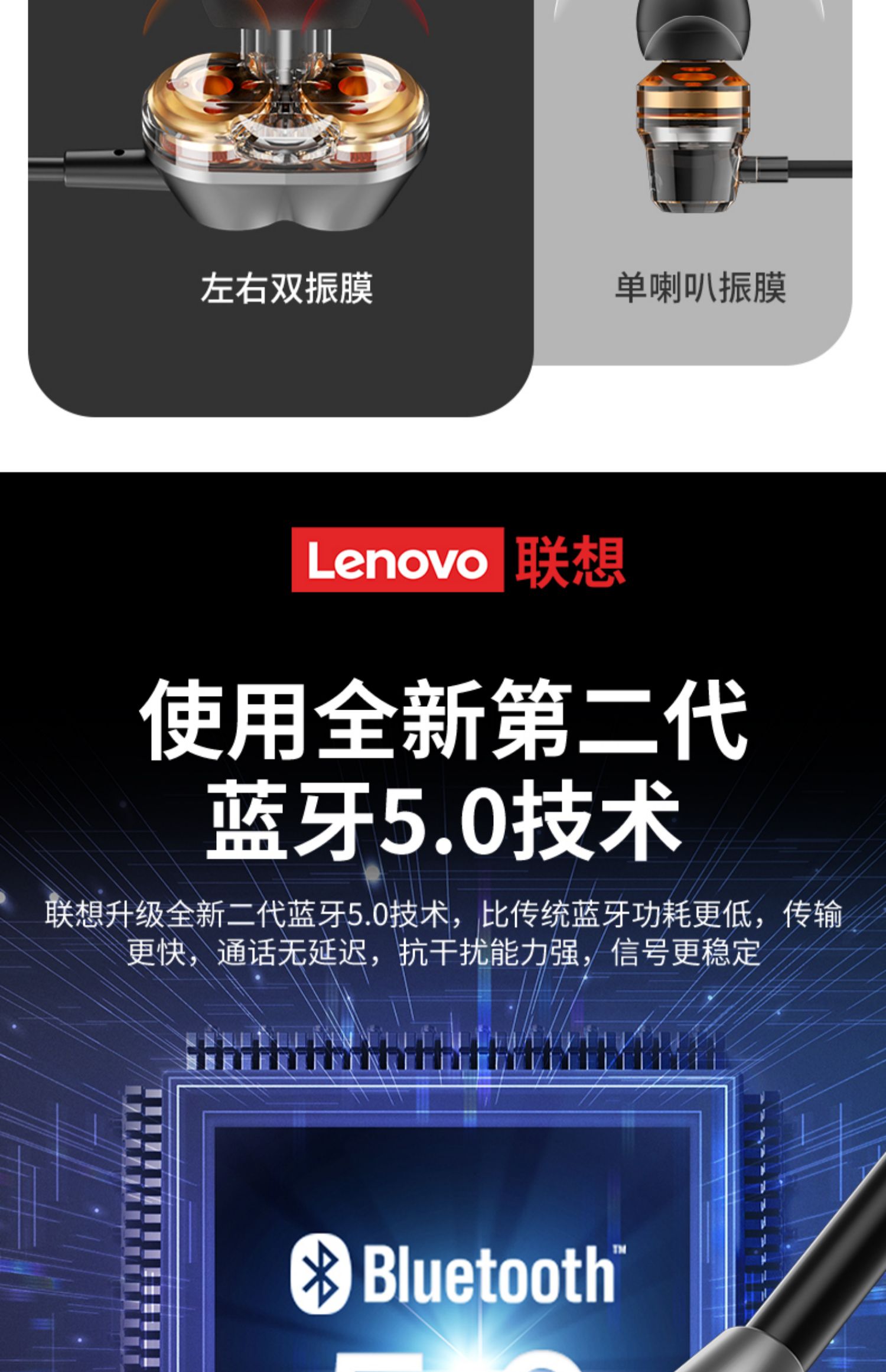 • 商品名称:联想无线蓝牙耳机颈挂脖式金属磁吸运动型跑步游戏超长待机续航头戴式单双耳防水入耳挂耳塞适用苹果小米华为