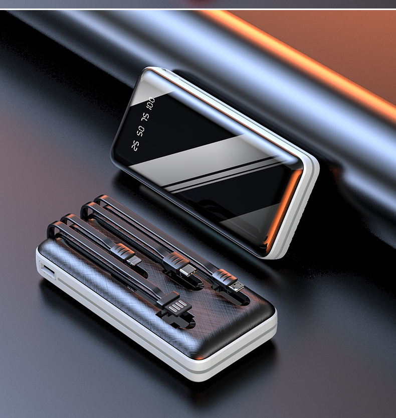 原装正品20000毫安快充大容量充电宝LED显示屏自带四线超薄便携3