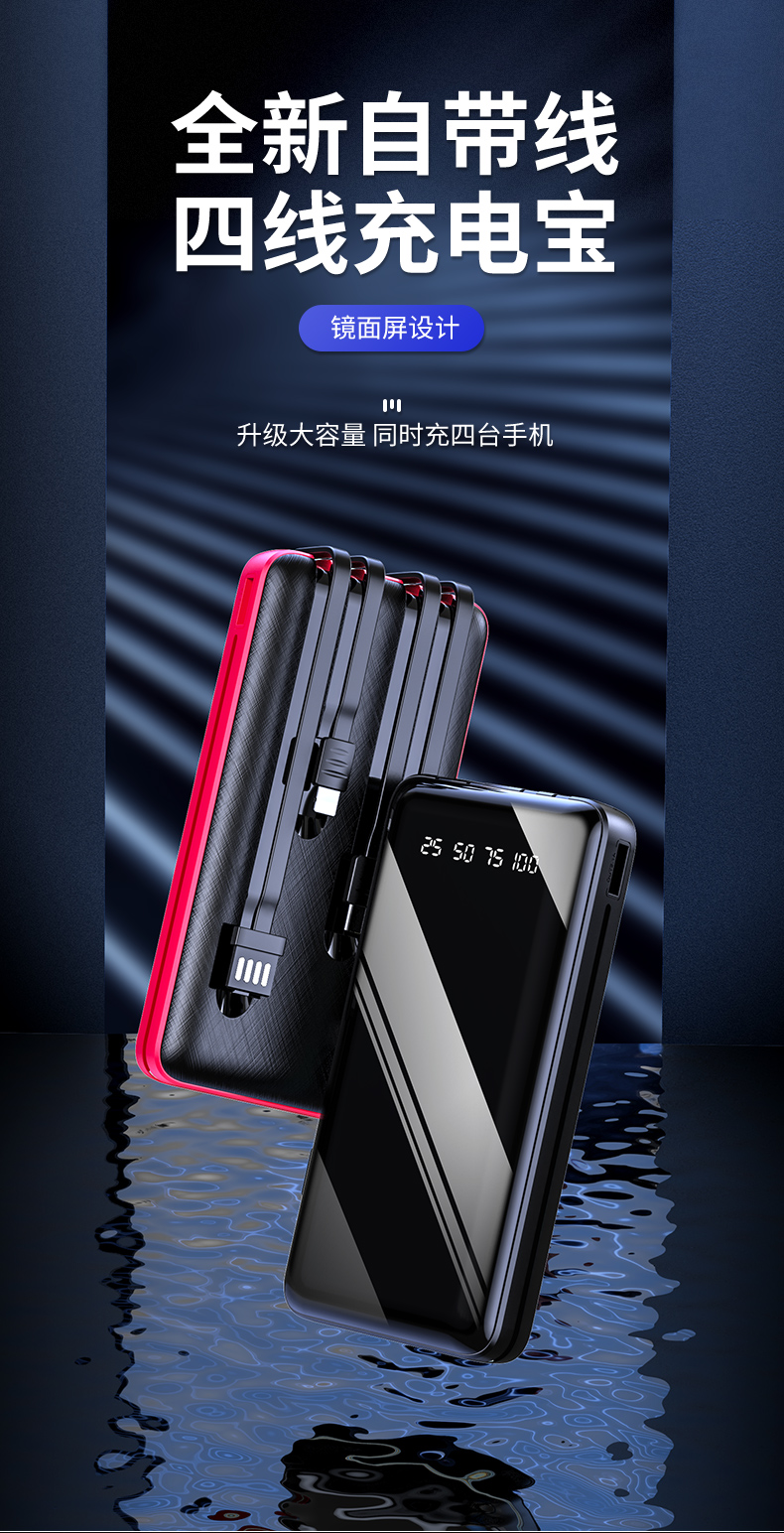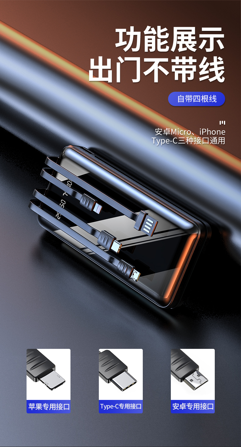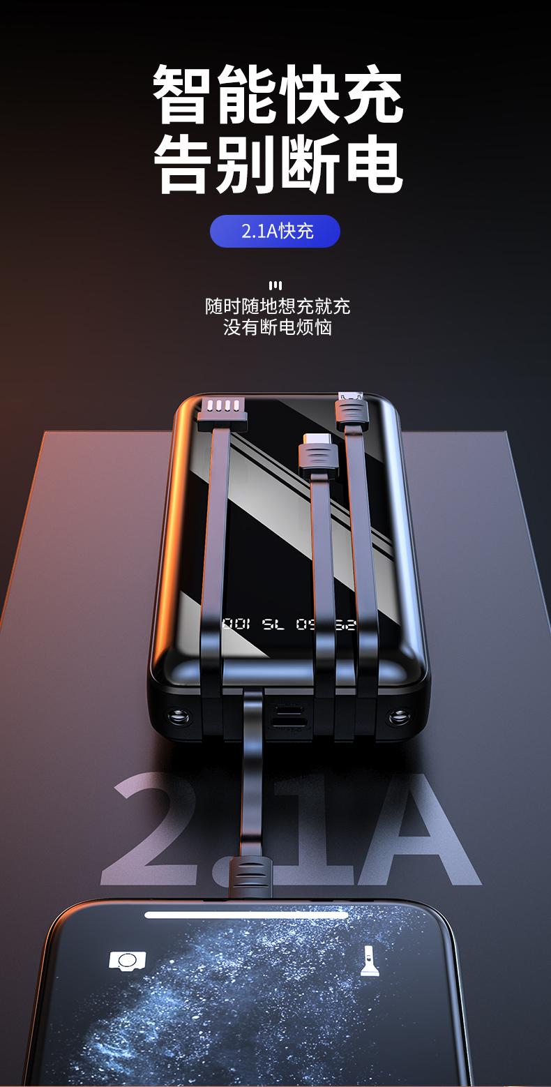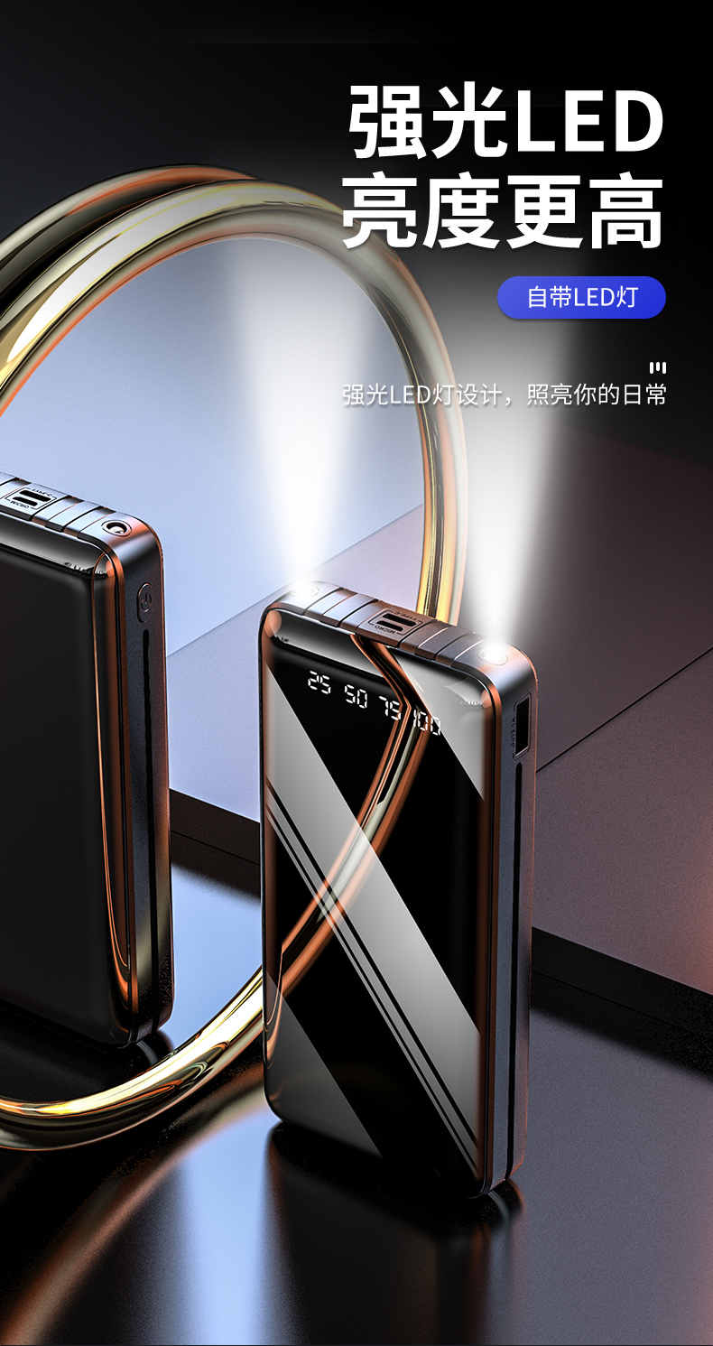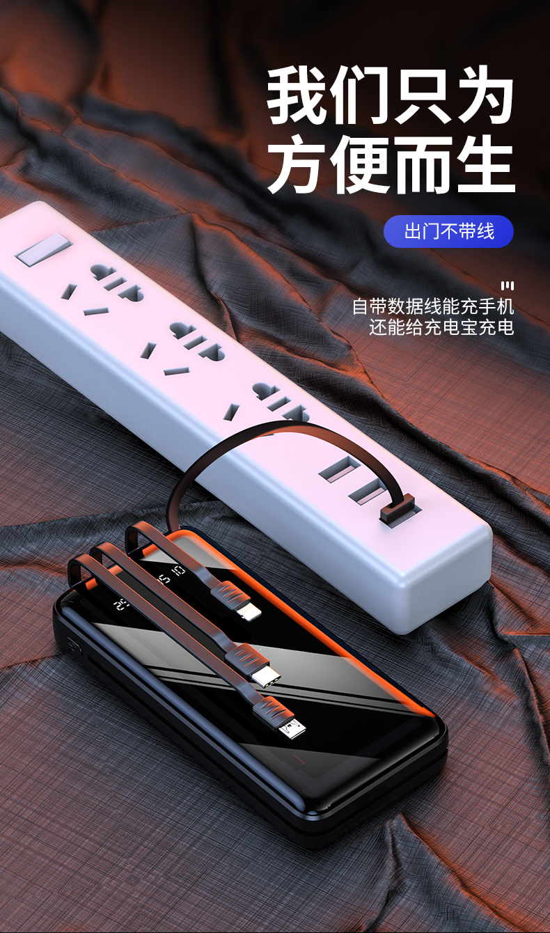 • 商品名称:原装正品20000毫安快充大容量充电宝LED显示屏自带四线超薄便携3