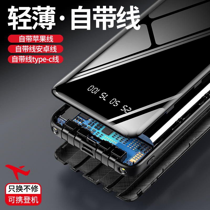 20000毫安自带线充电宝超薄小巧便携迷你大容量快充移动电源适用苹果华为小oppo专用vivo超大量1000000