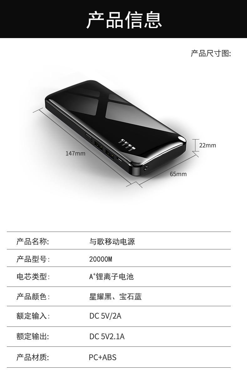 • 商品名称:20000毫安自带线充电宝超薄小巧便携迷你大容量快充移动电源适用苹果华为小oppo专用vivo超大量1000000