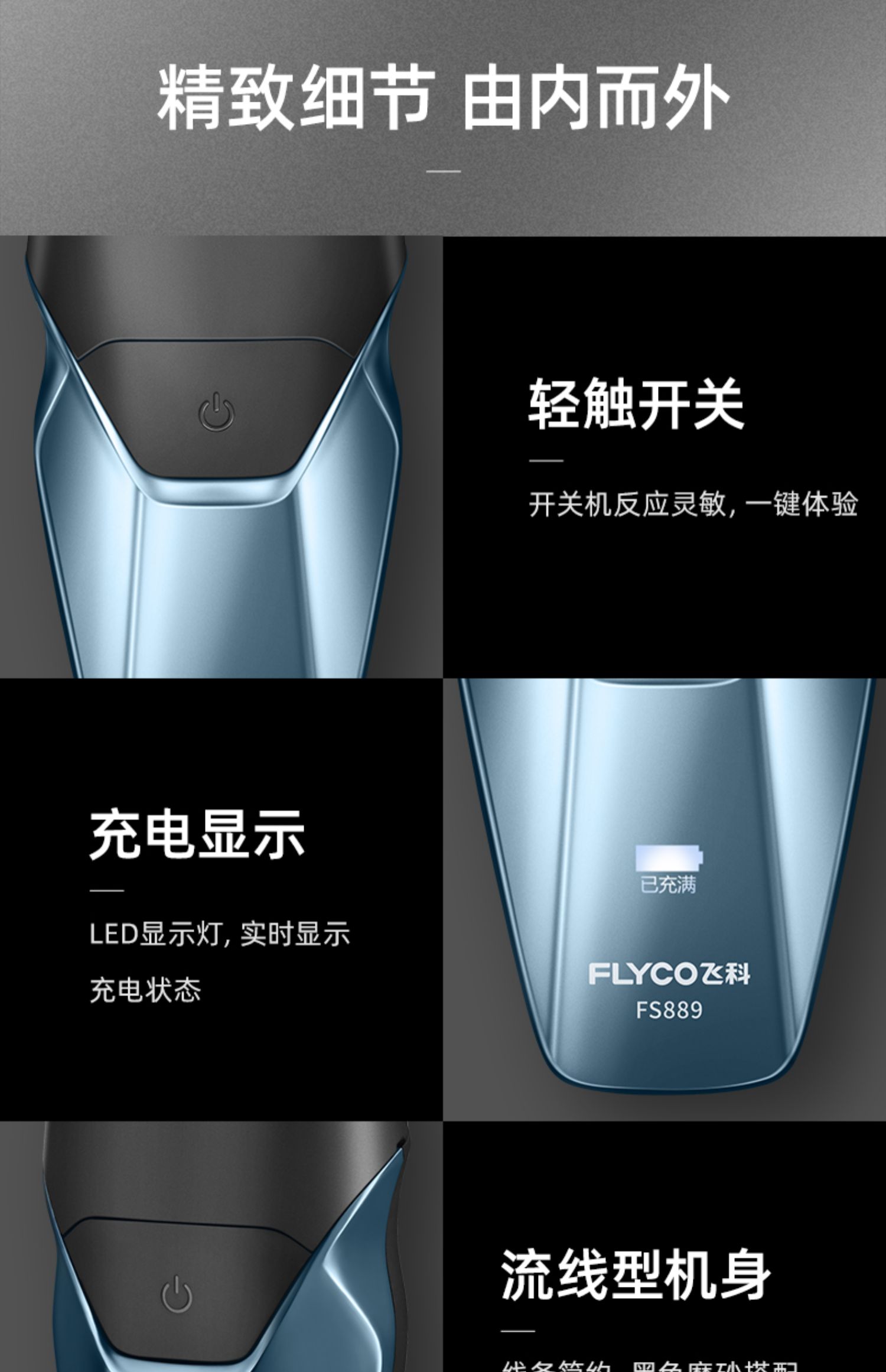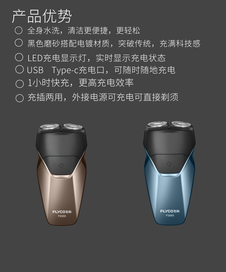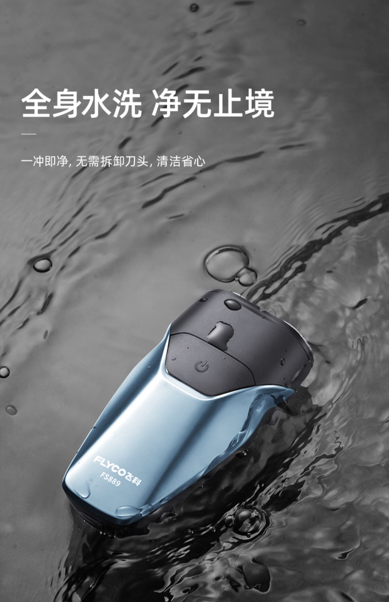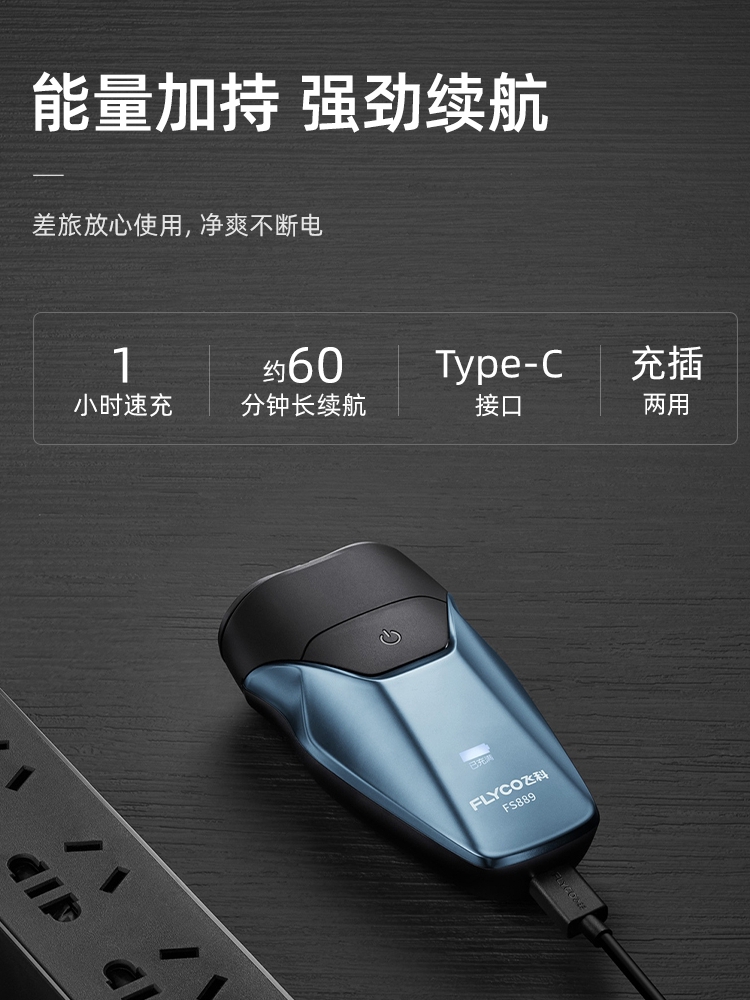 飞科剃须刀电动男士刮胡刀胡须刀片全身水洗智能充电式1h快充刀头