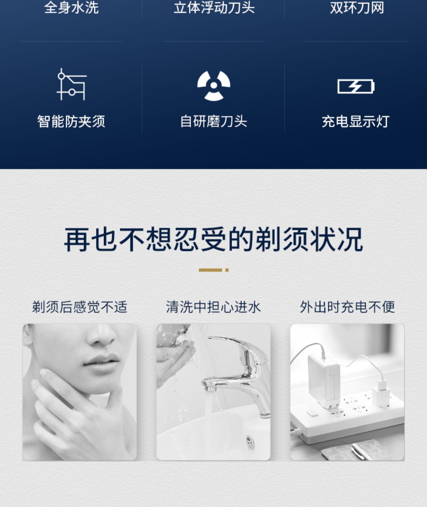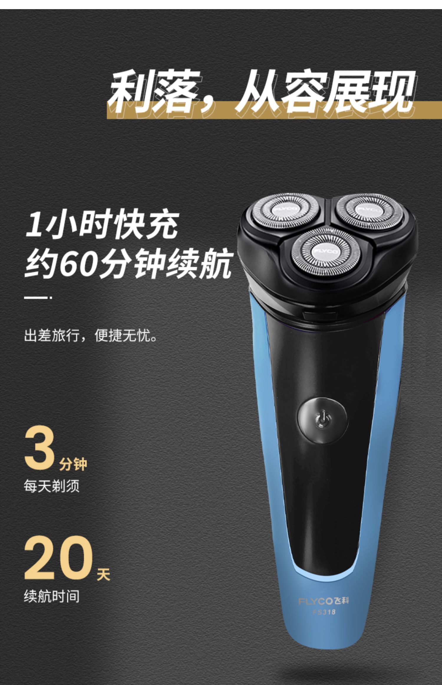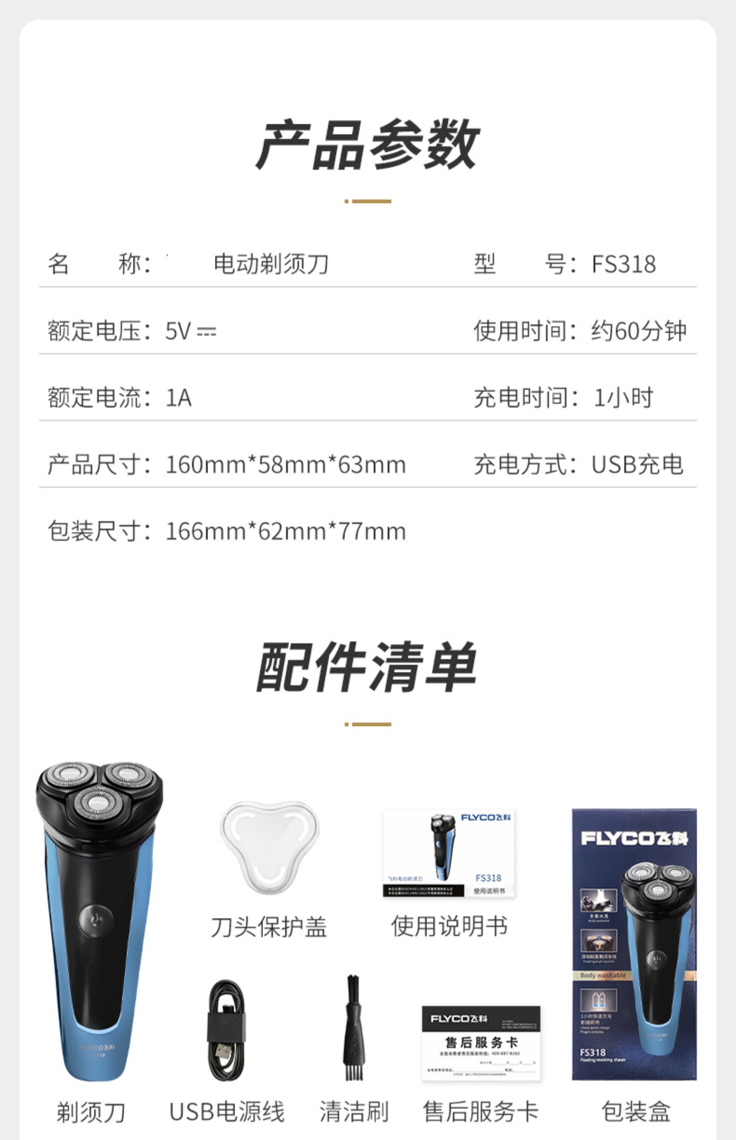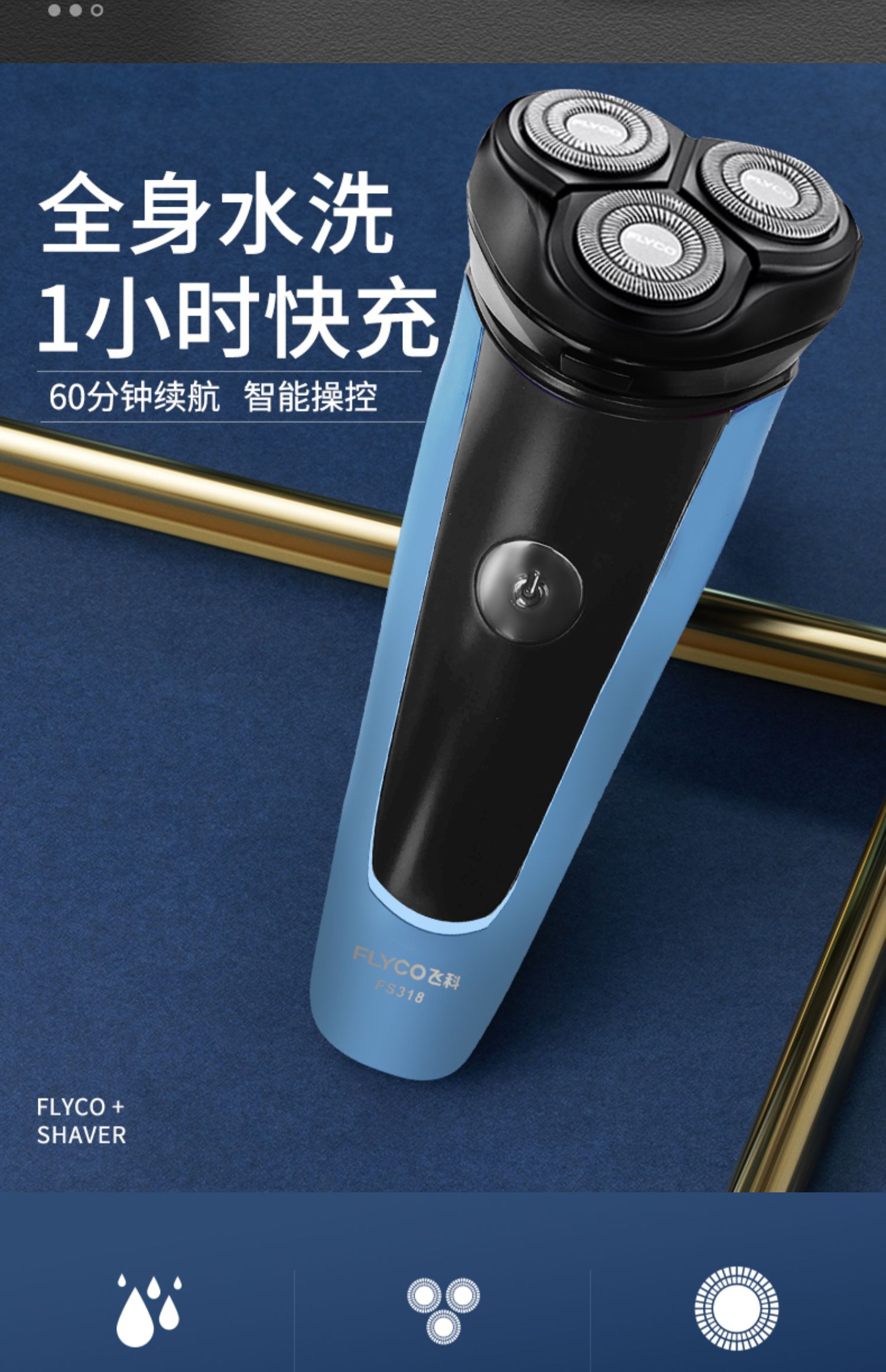 • 商品名称:飞科剃须刀全身水洗电动剃须刀男士刮胡刀充电式胡须刀液晶快充