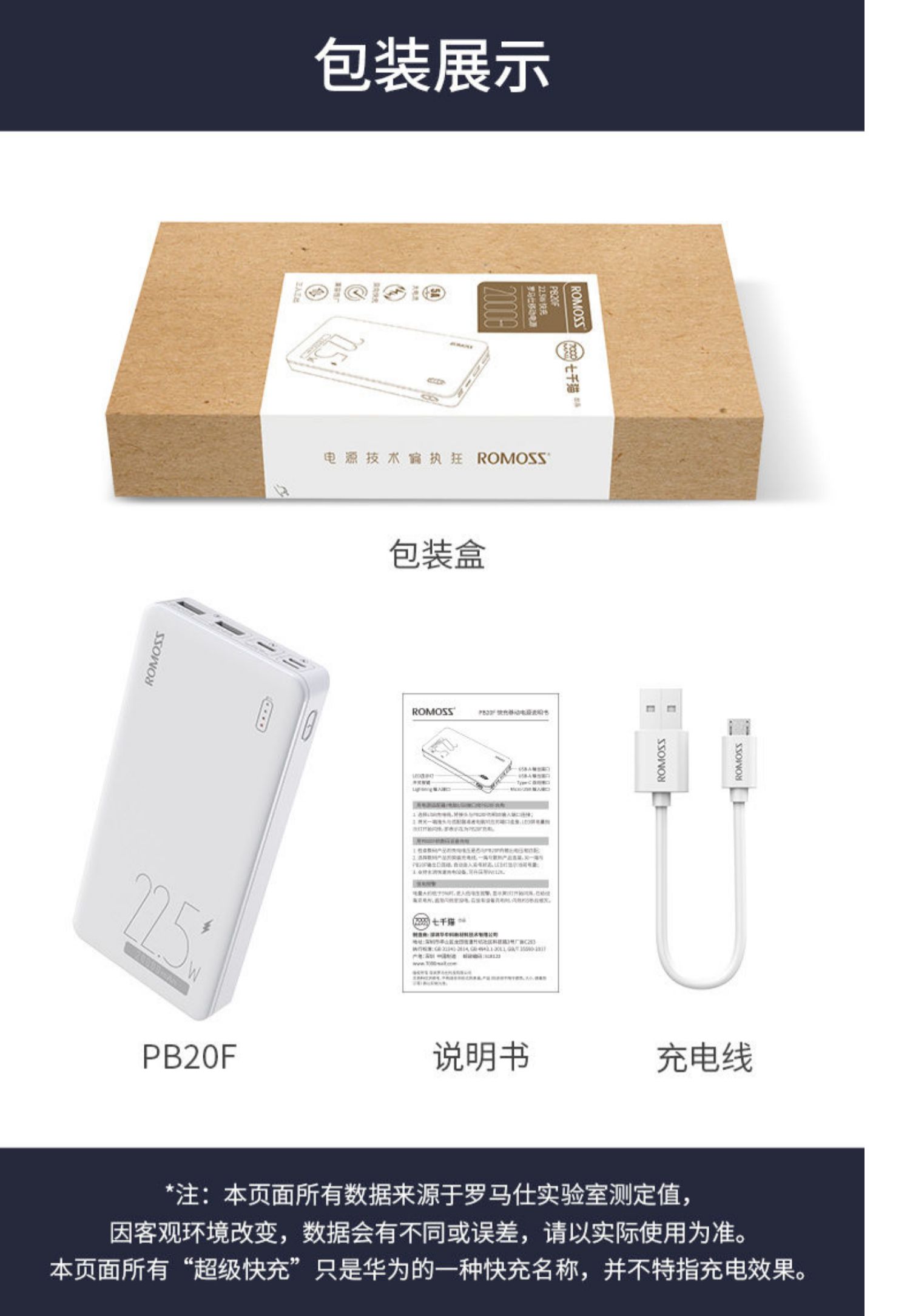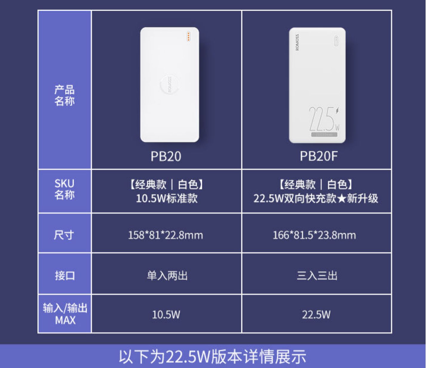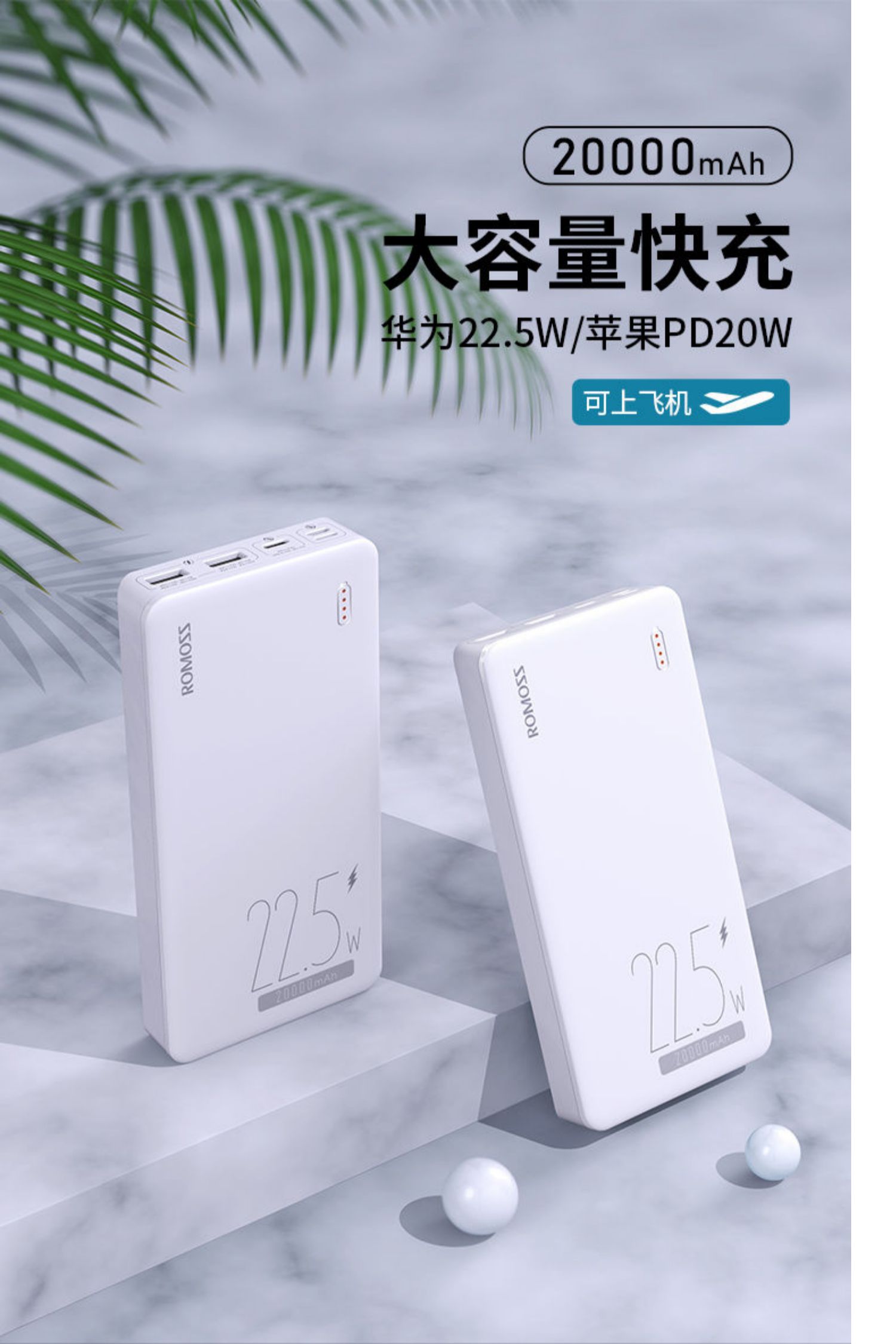 • 商品名称:罗马仕充电宝20000毫安时大容量苹果20WPD快充适用于iphpne13华为22.5W快充移动电源手机通用旗舰正品