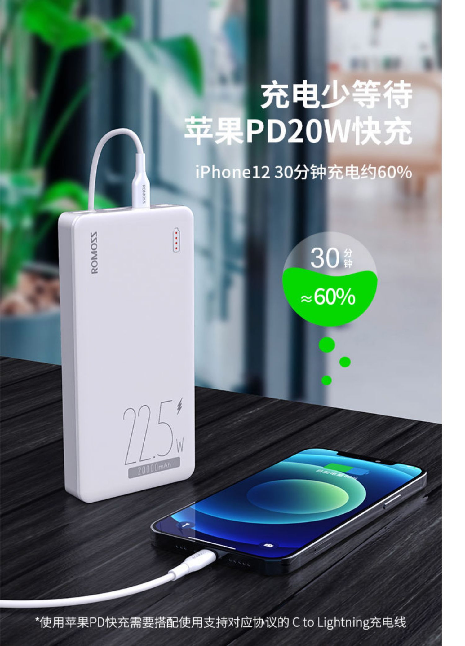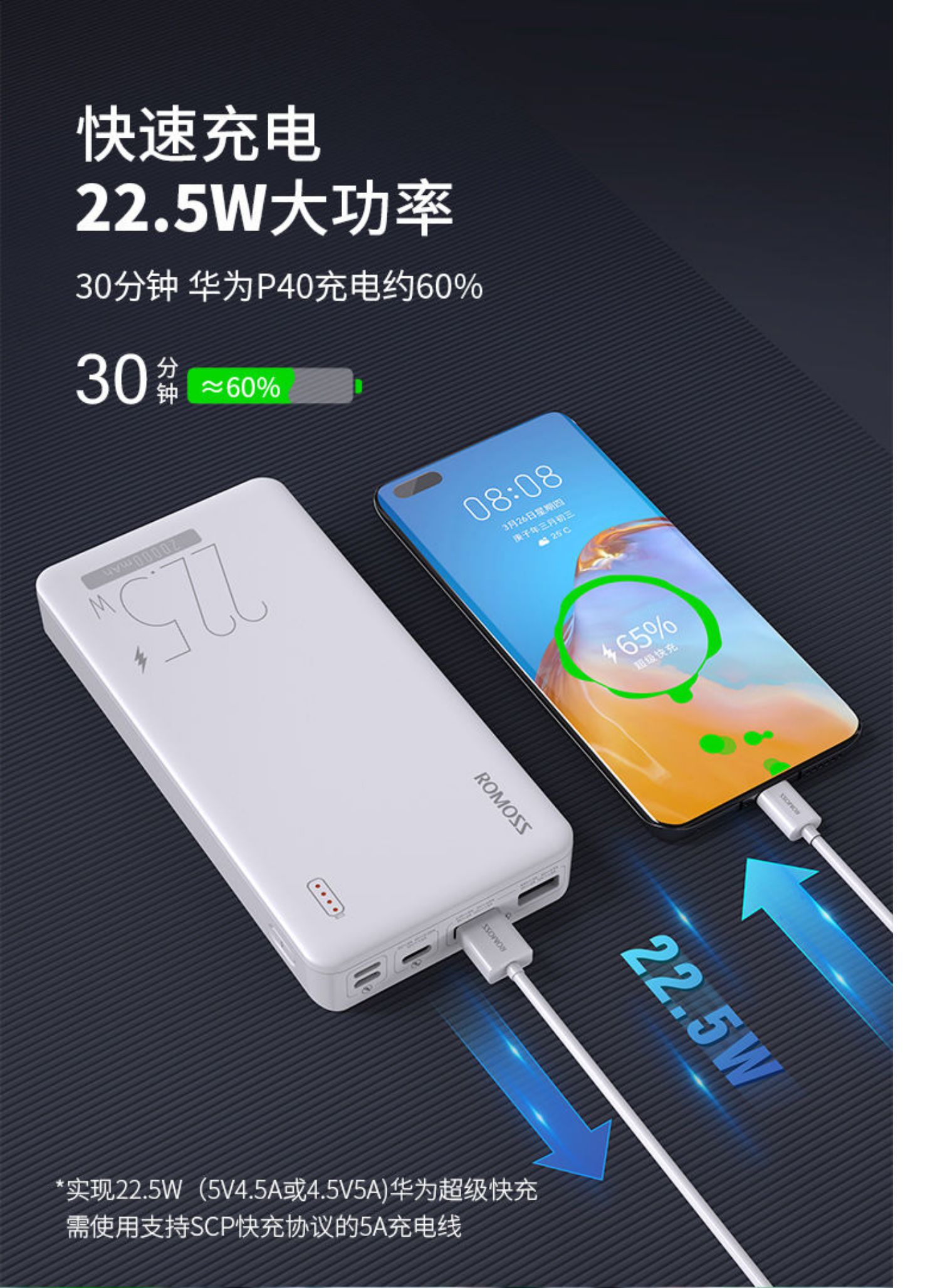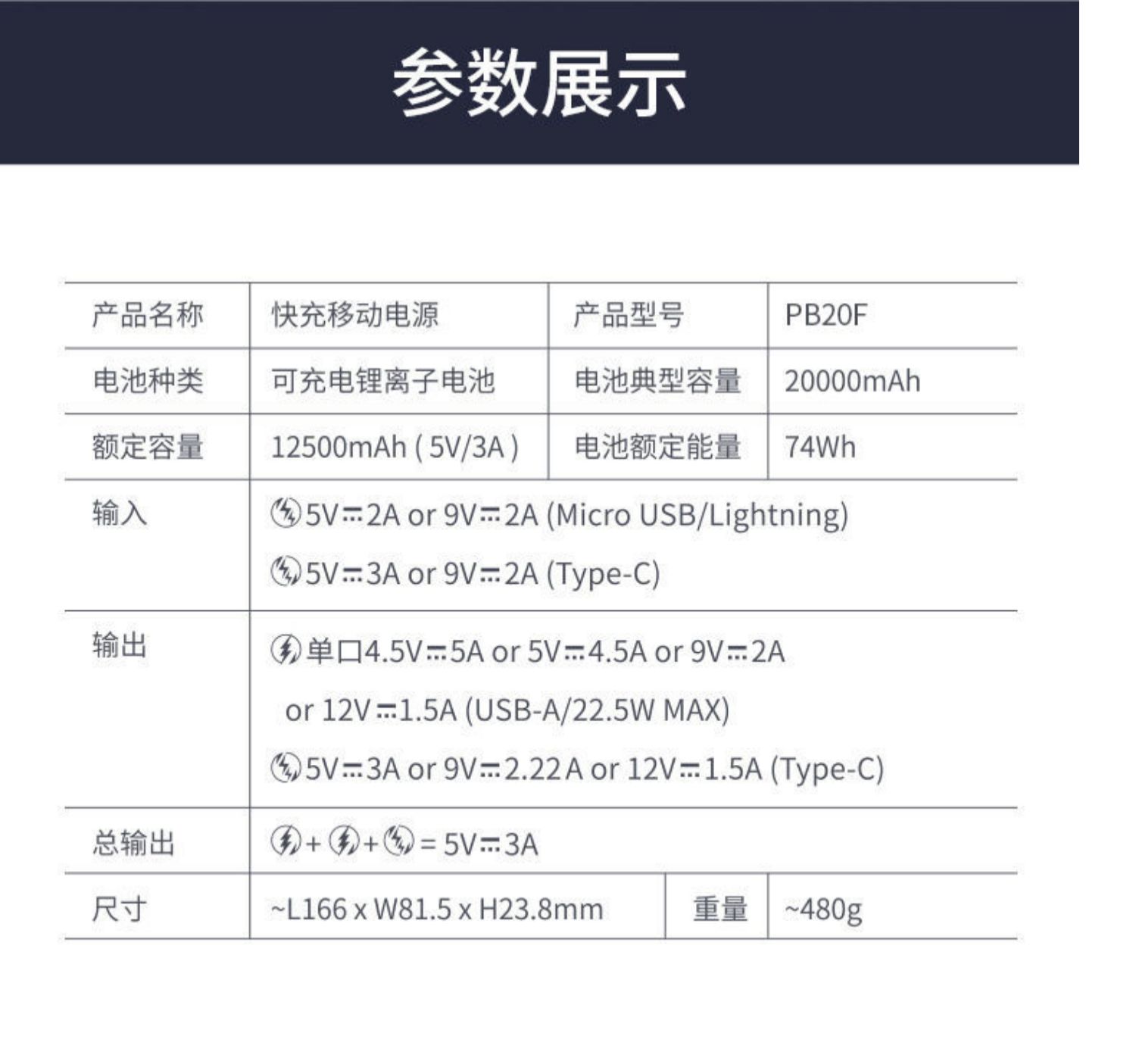 • 商品名称:罗马仕充电宝20000毫安时大容量苹果20WPD快充适用于iphpne13华为22.5W快充移动电源手机通用旗舰正品