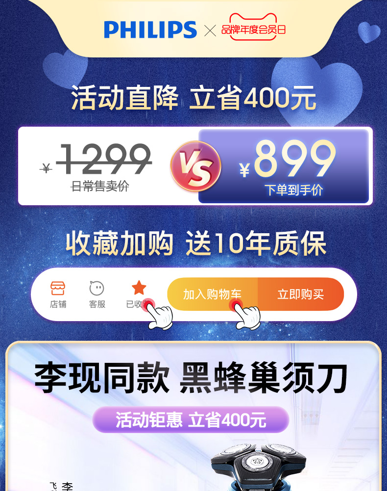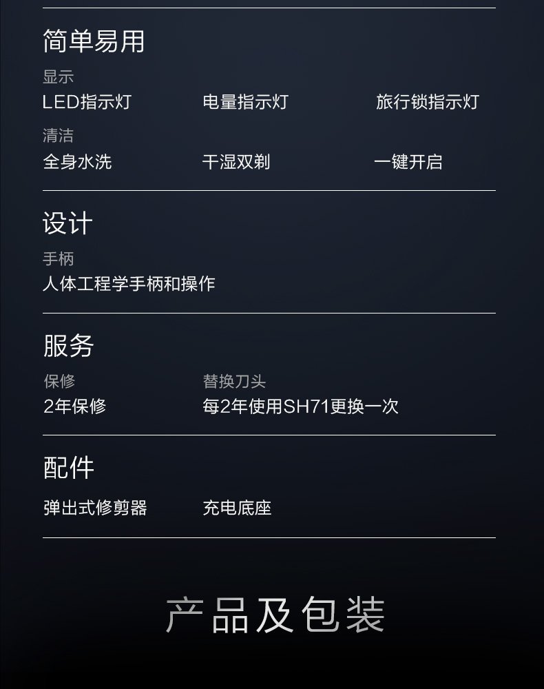• 商品名称:飞利浦电动剃须刀男士黑蜂巢2021新款正品原装刮胡刀菲利普S5535