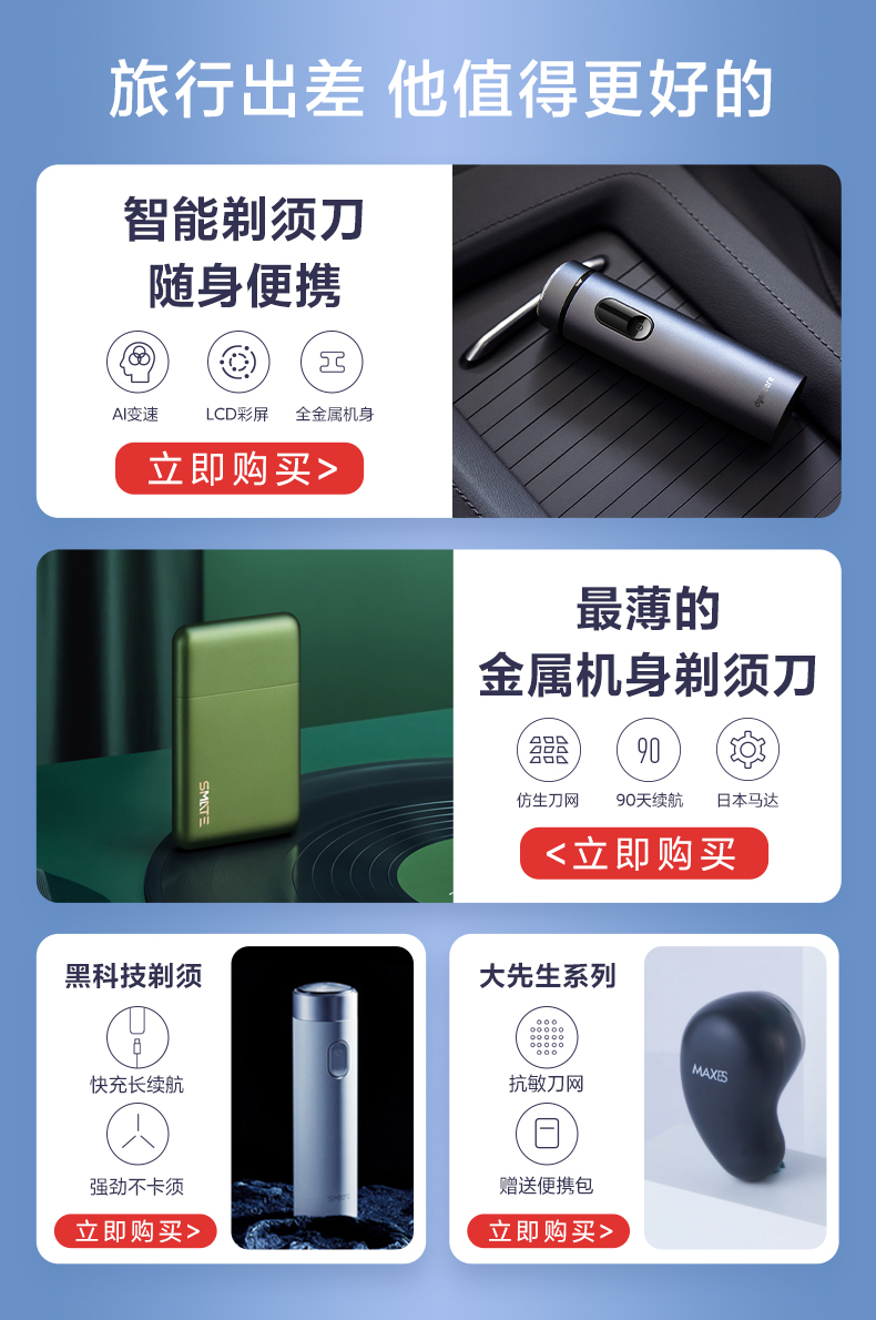 须眉大先生便携电动剃须刀充电式便携车载Type-C快充旅行全身水洗