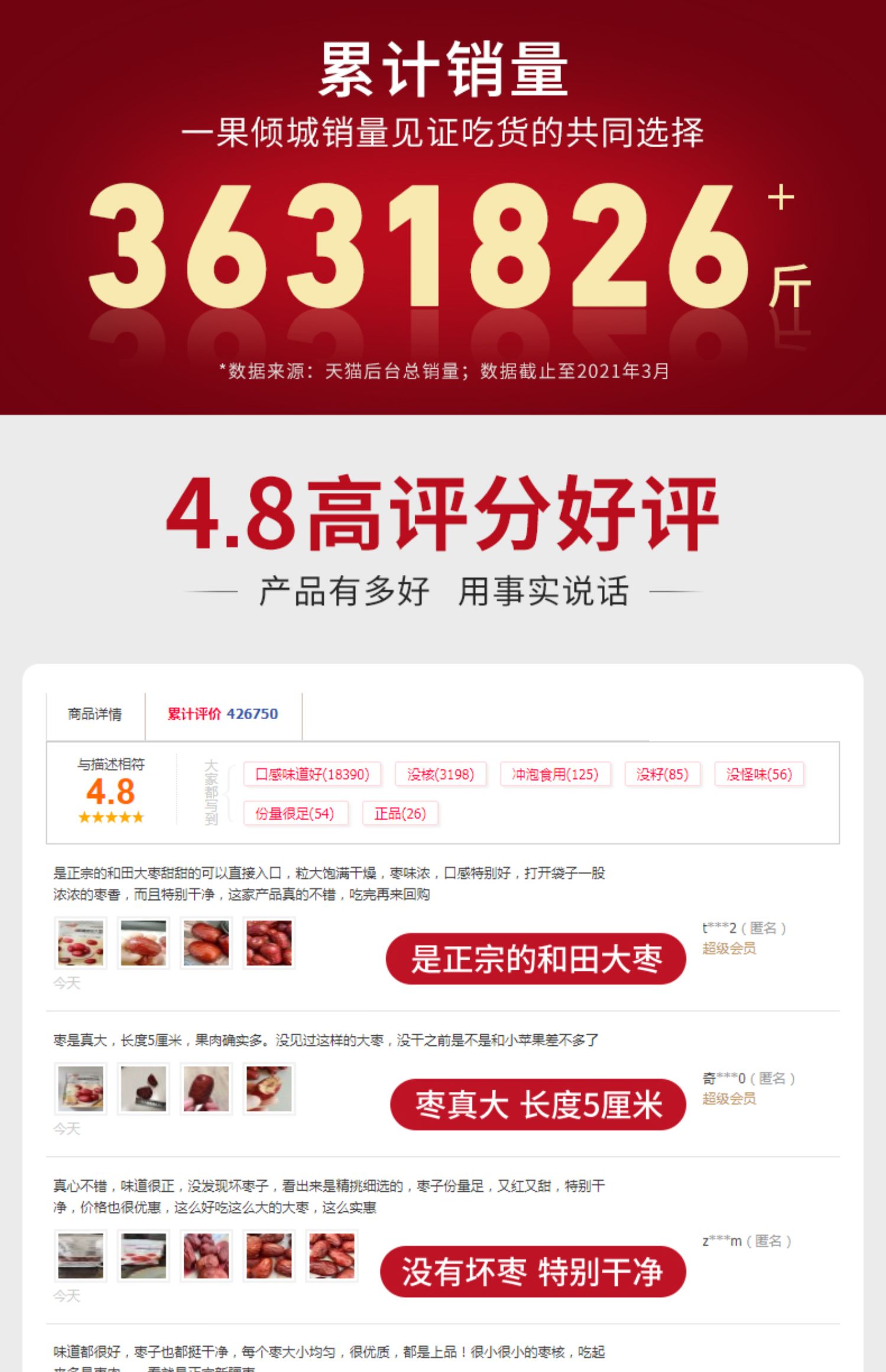 • 商品名称:新疆红枣特级和田大枣2500g特大红枣干一级骏枣特产特大枣子零食