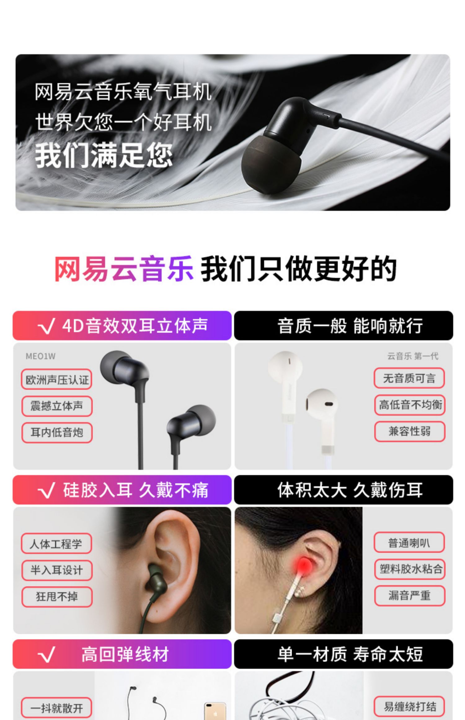 • 商品名称:网易 云音乐氧气耳机HIFI入耳式有线 高音质耳塞手机电脑重低音炮降噪吃鸡游戏听声辩位耳麦