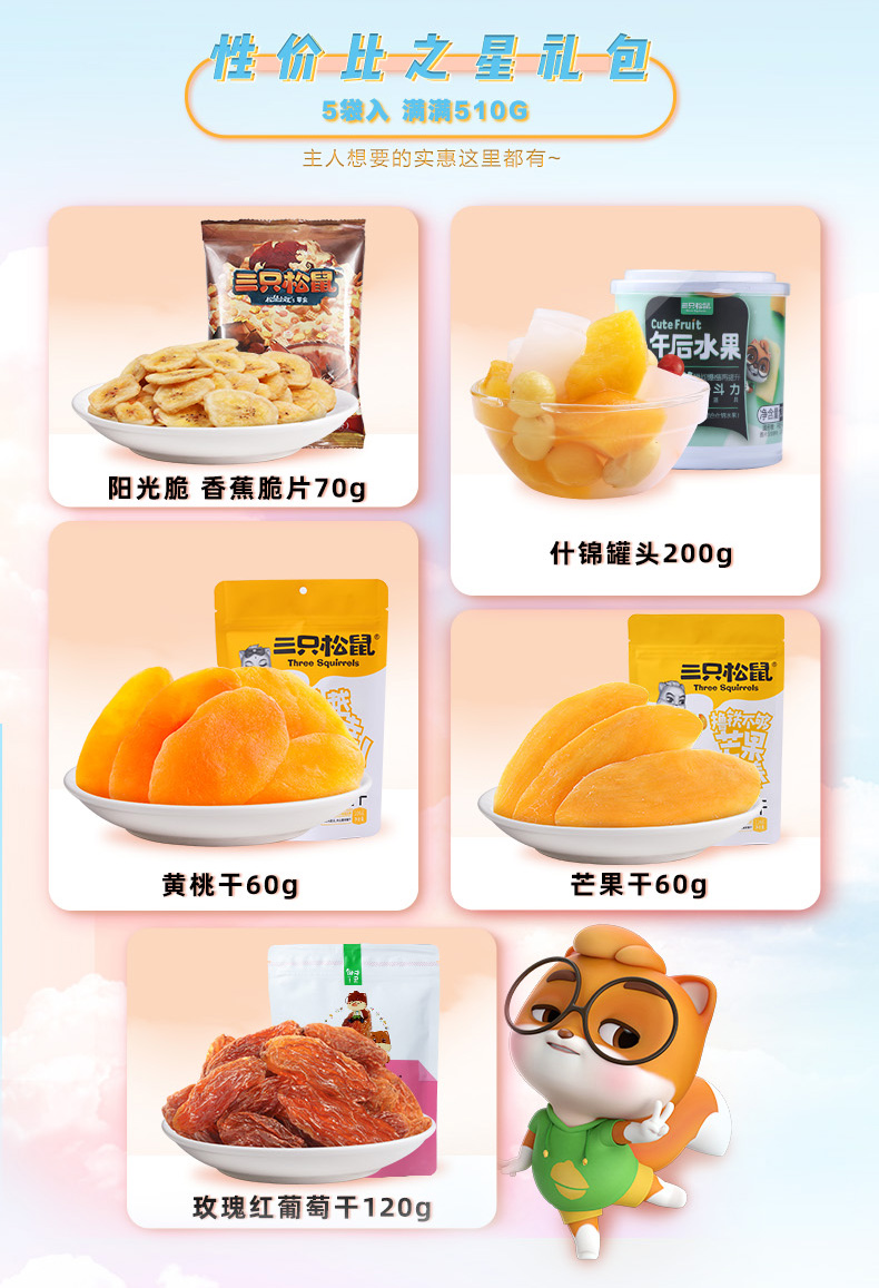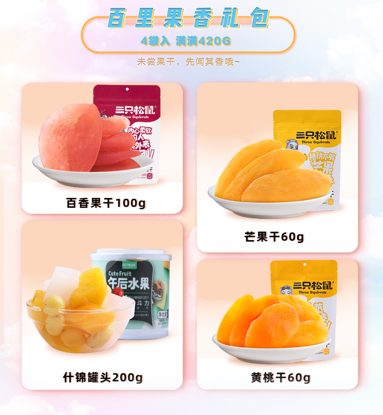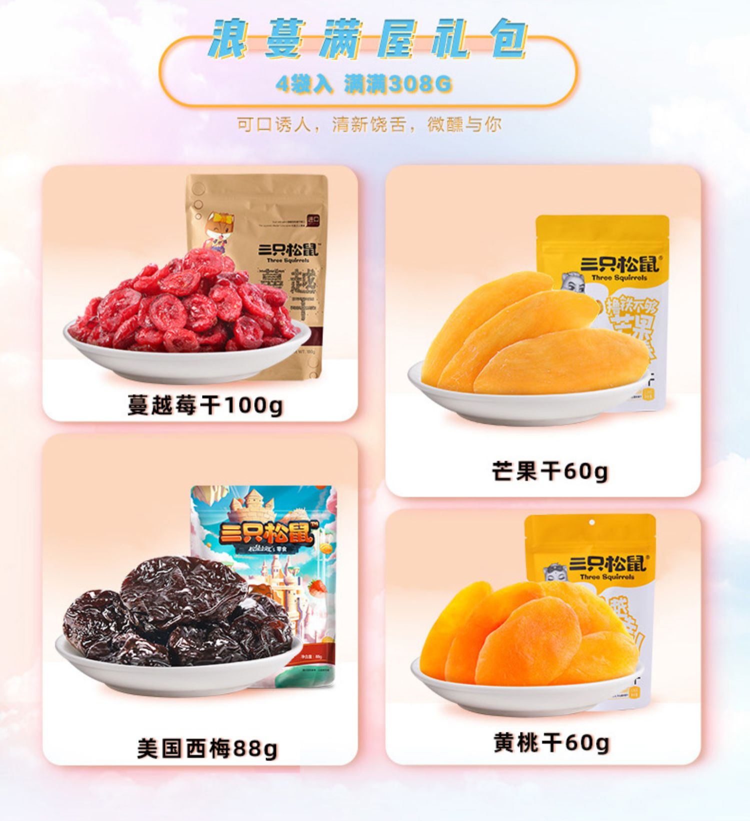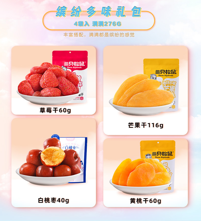 • 商品名称:【三只松鼠_水果干大礼包】蜜饯果脯零食小吃芒果红枣草莓干山楂