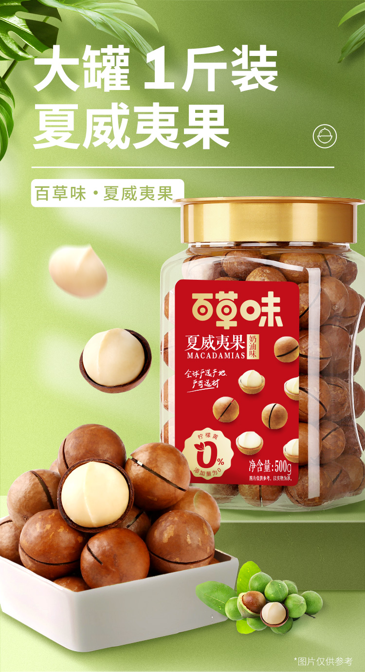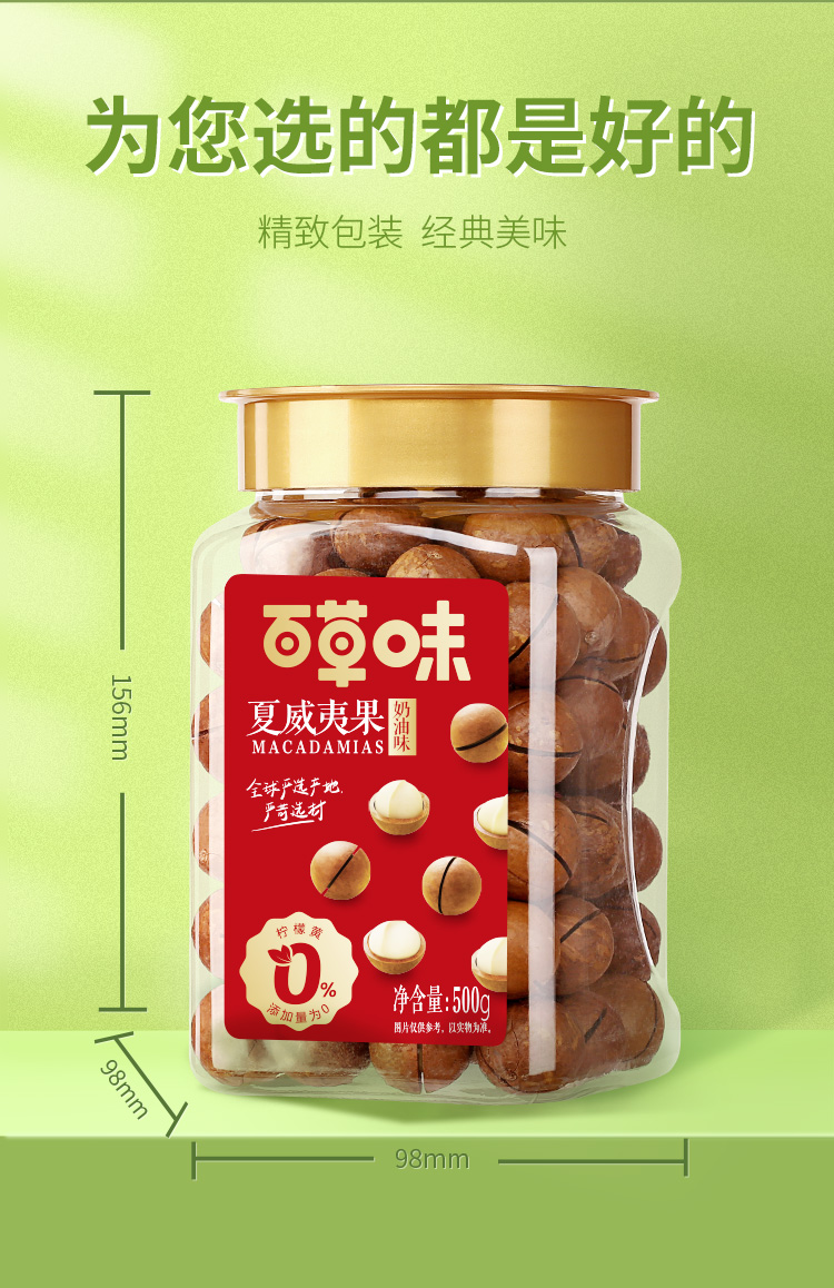 • 商品名称:百草味-罐装夏威夷果500g 奶油味坚果年新货孕妇零休闲食干果年货
