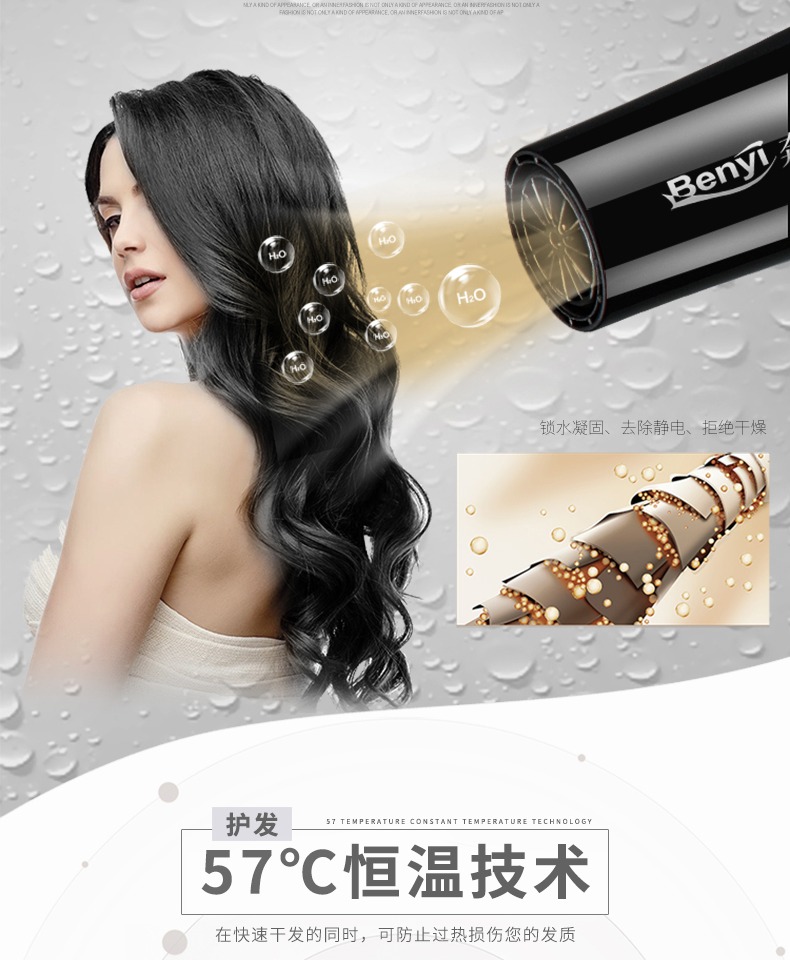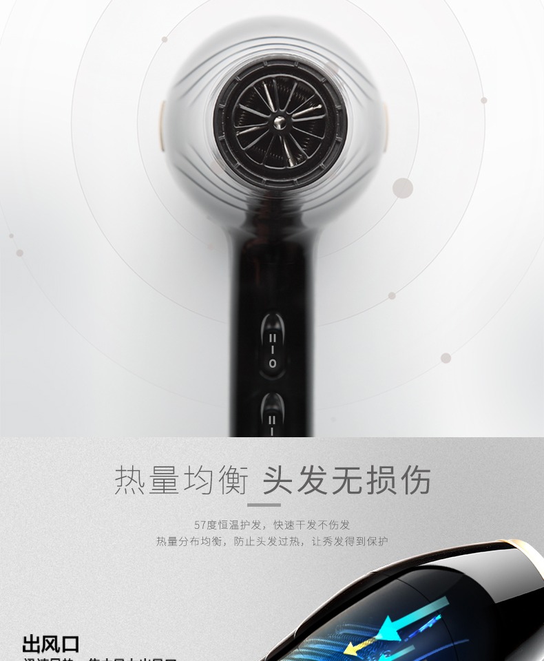 • 商品名称:奔逸电吹风机大功率家用发廊理发店吹风筒冷热风2000W恒温不伤发