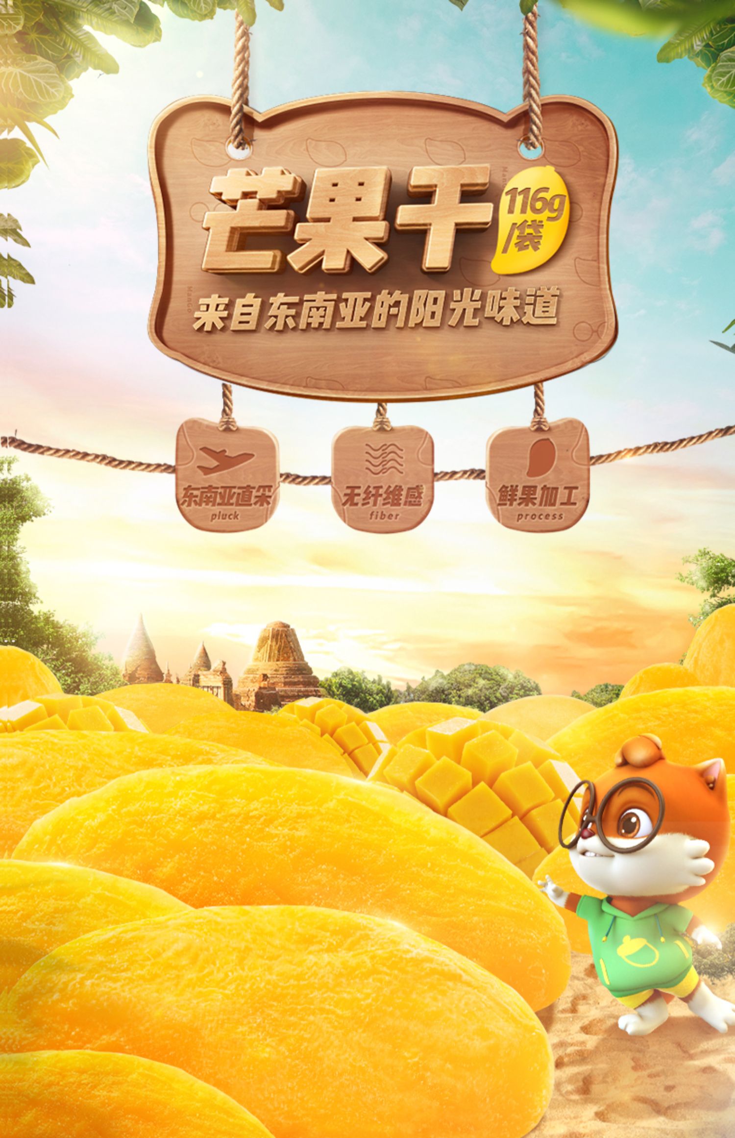 【三只松鼠_芒果干116gx3】休闲零食小吃果脯蜜饯食品解馋小零食