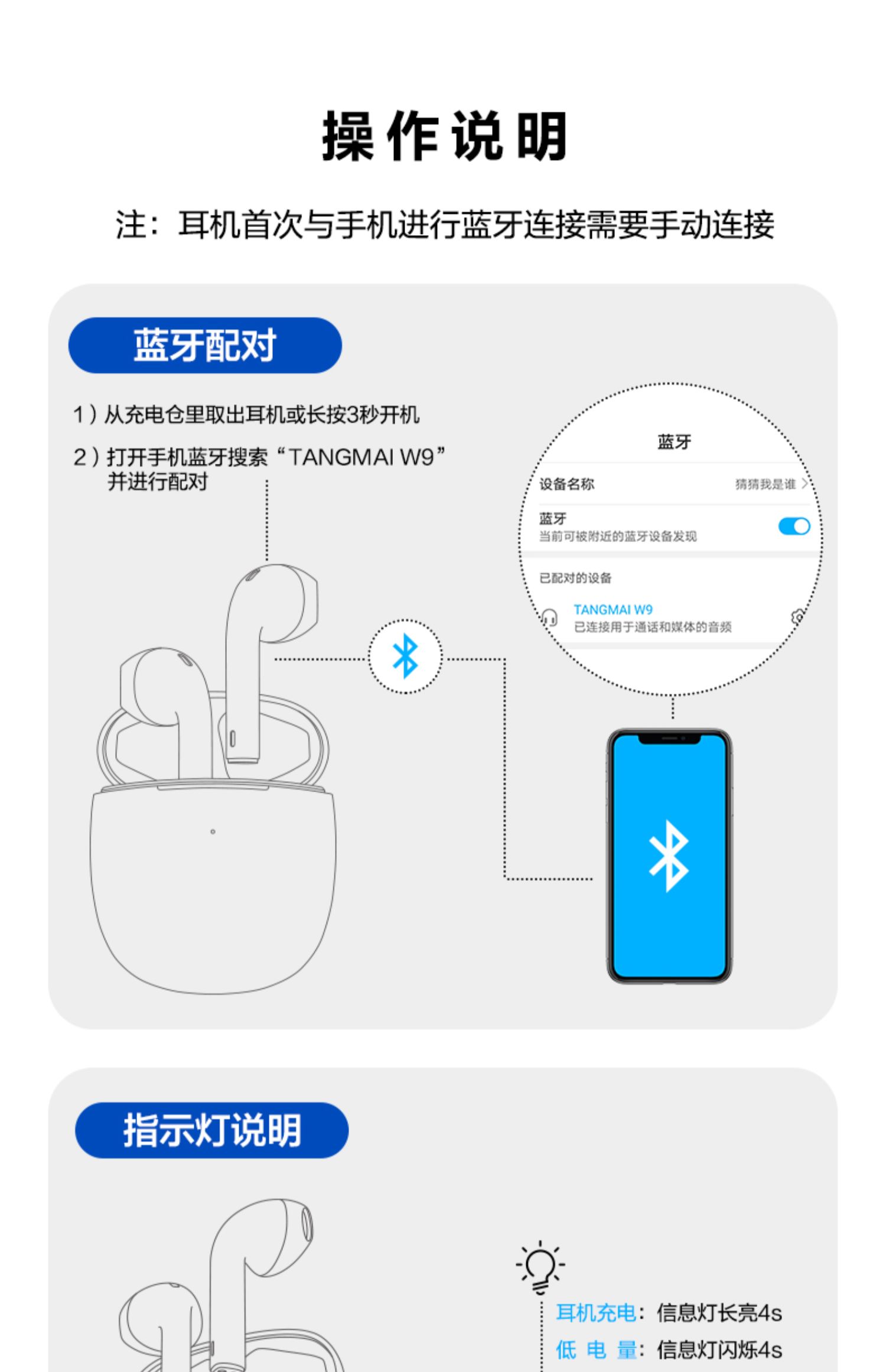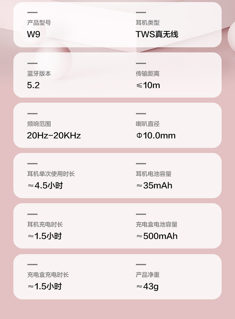 • 商品名称:唐麦 W9蓝牙耳机真无线运动半入耳无延迟游戏降噪适用于苹果华为oppo小米vivo高端男女士款高音质2021年新款