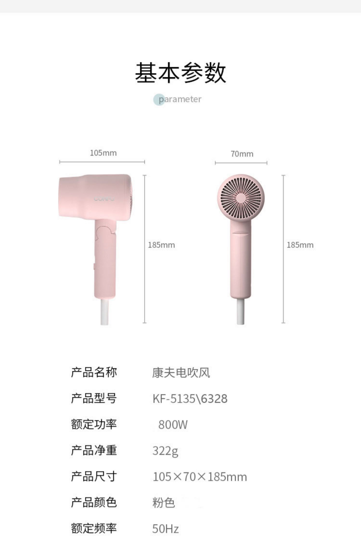 • 商品名称:康夫电吹风机家用小功率800W宿舍用发型师专用学生吹风筒折叠便携