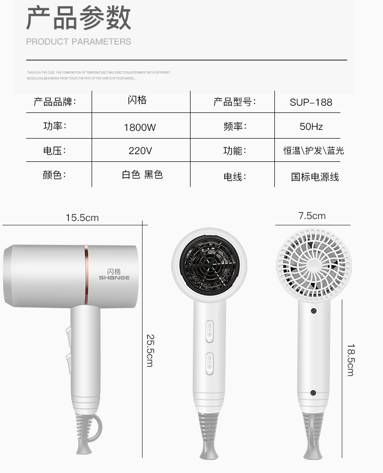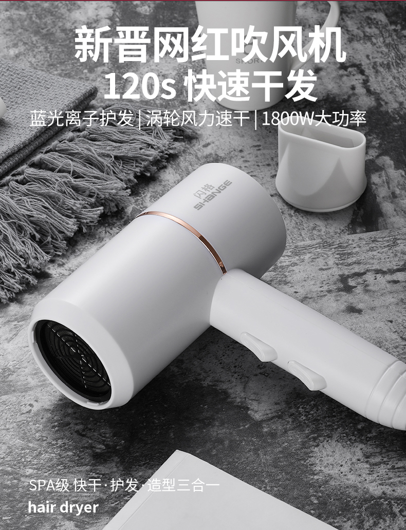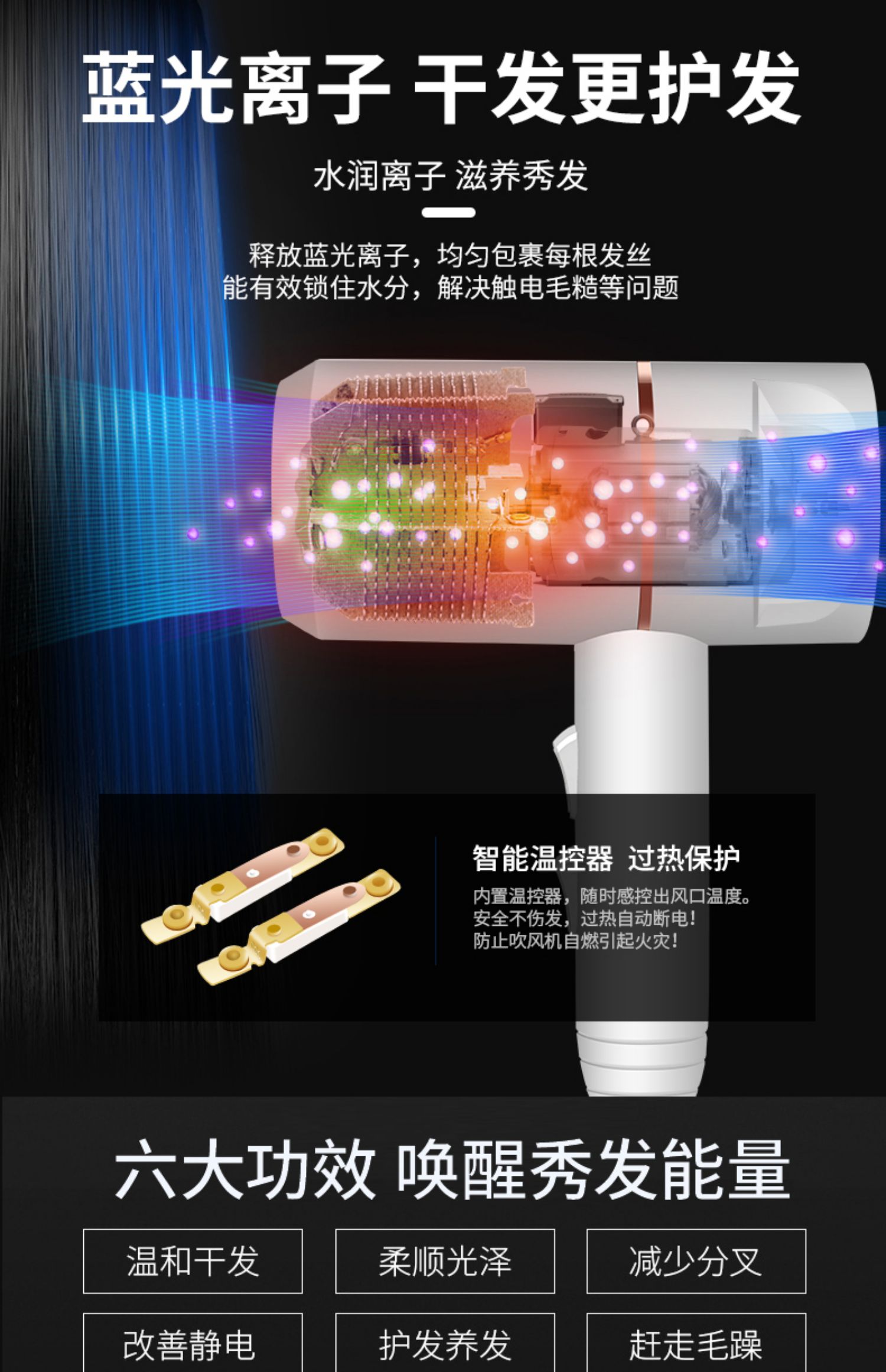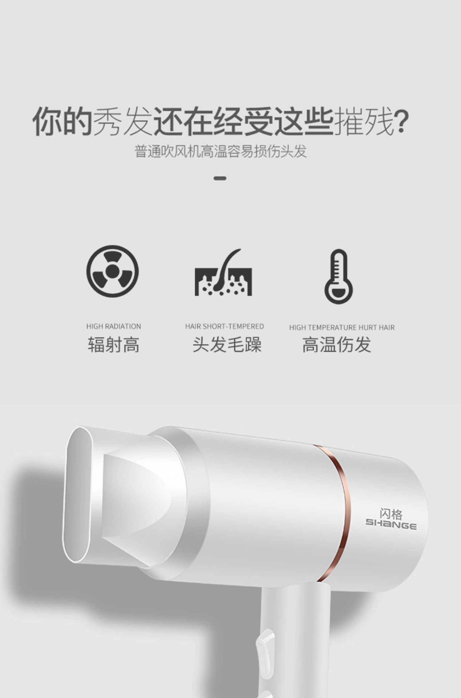 • 商品名称:闪格电吹风机家用负离子护发大风力宿舍学生发廊专用冷热不伤发筒