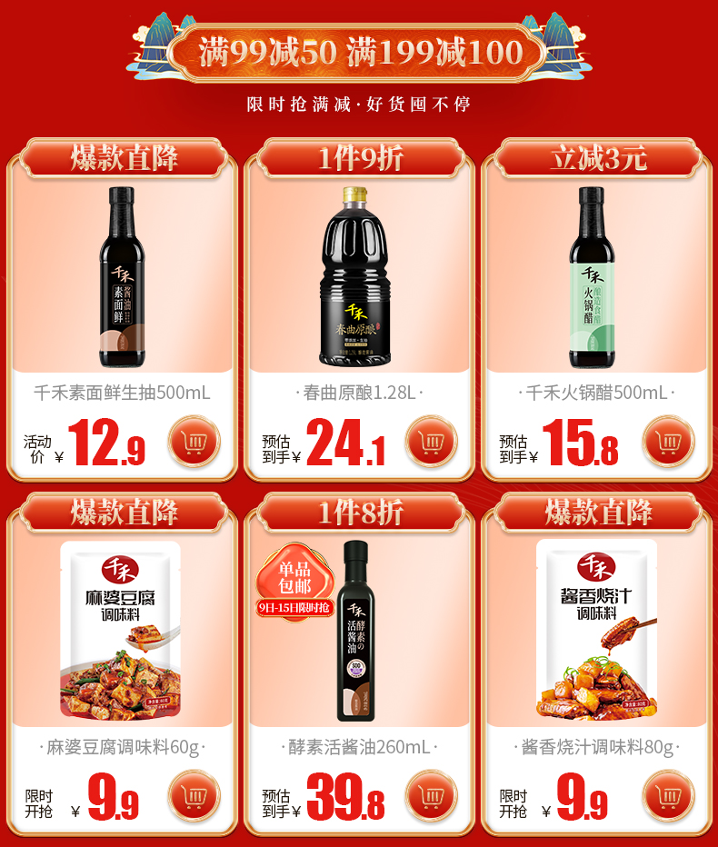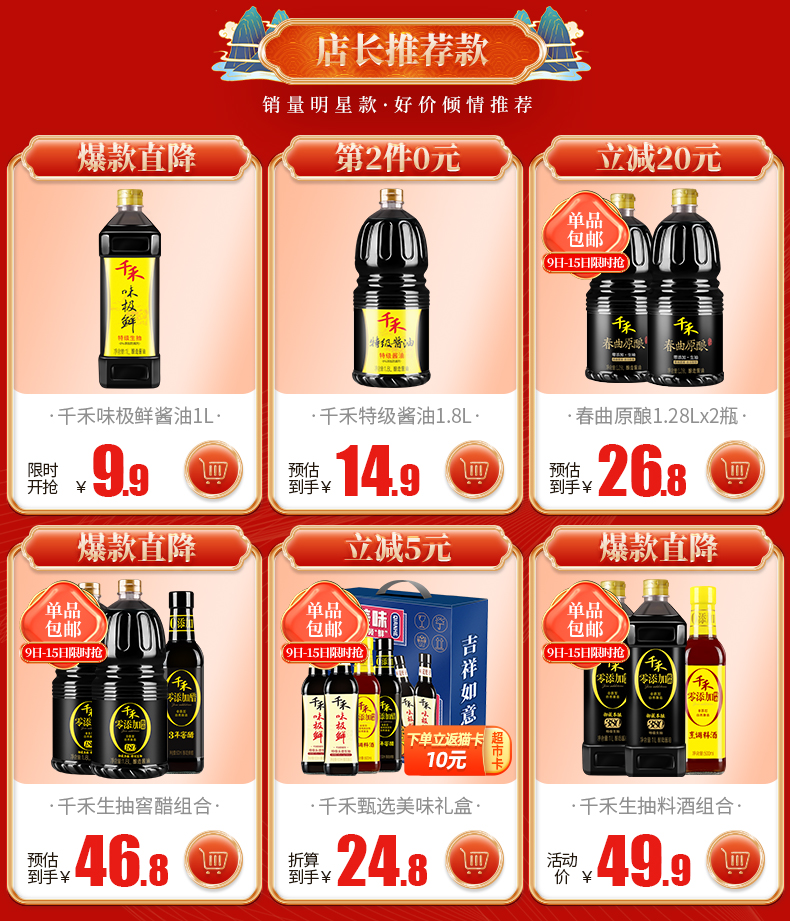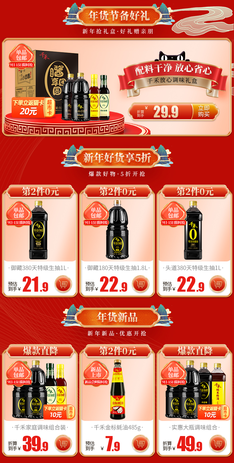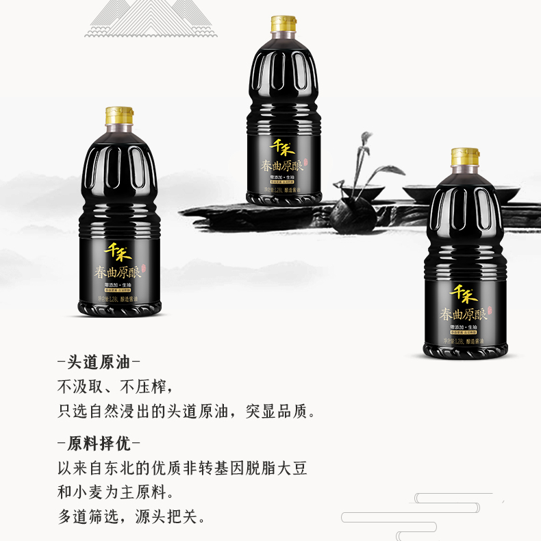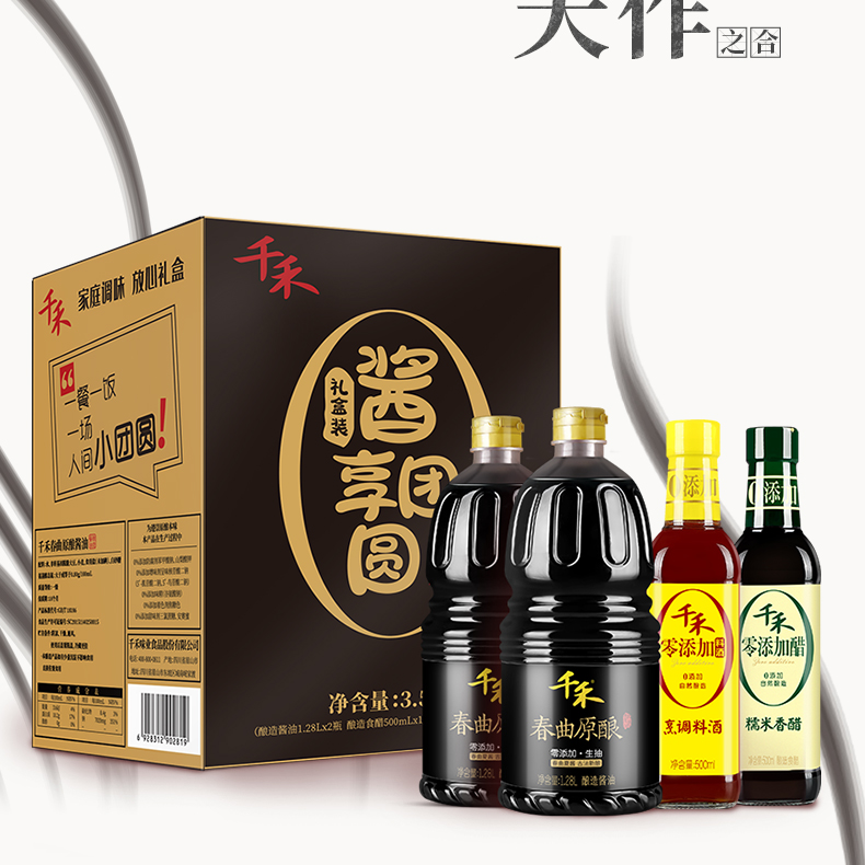 • 商品名称:千禾酱油放心礼盒1.28L*2+500ml*2生抽料酒香醋调味品年货箱装