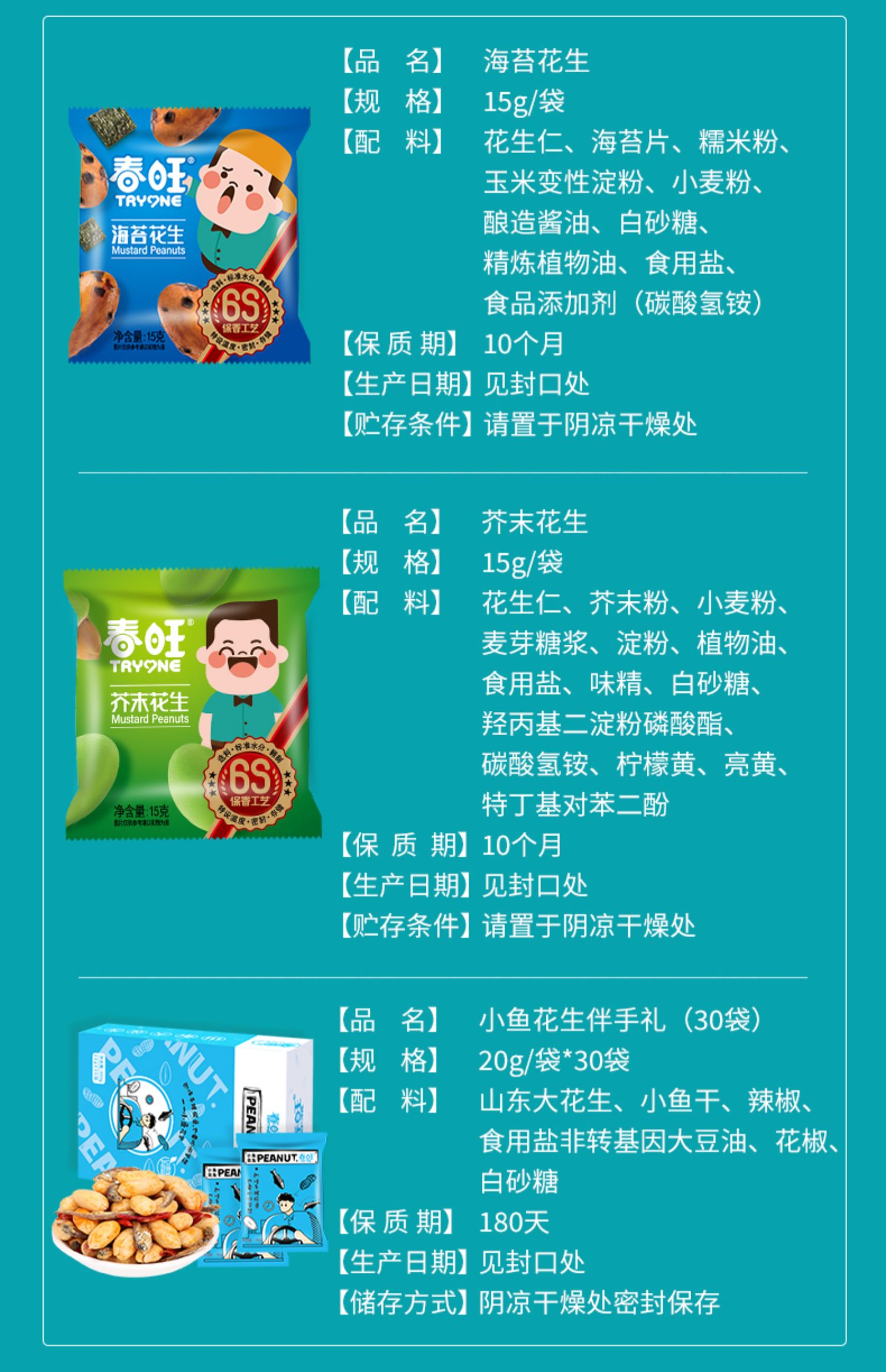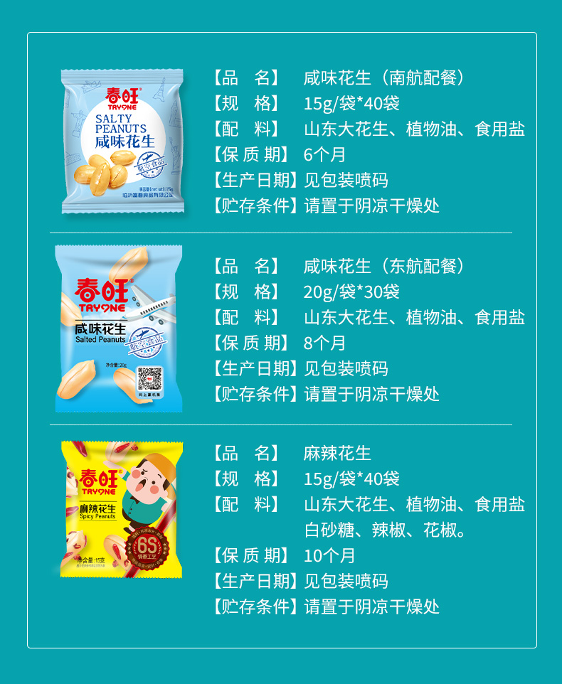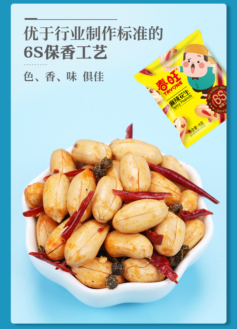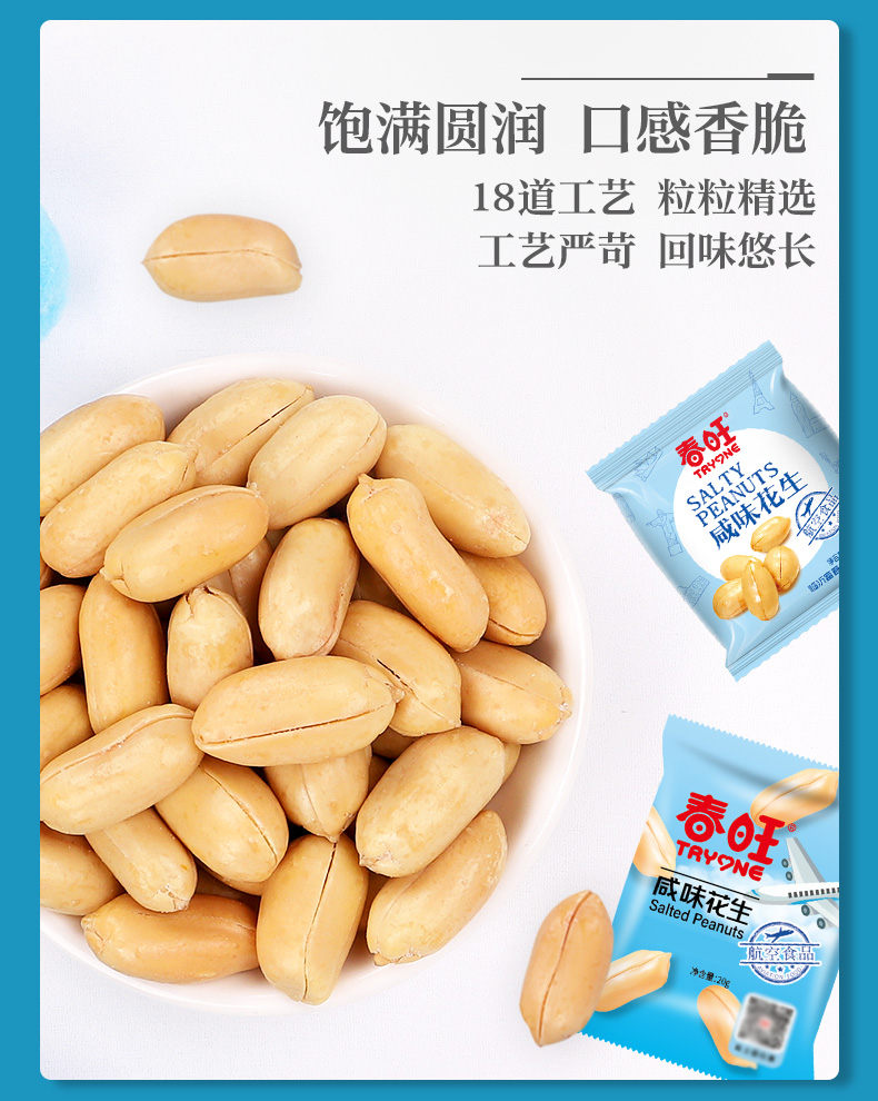 • 商品名称:春旺航空花生 麻辣熟飞机咸味椒盐淮盐花生米下酒菜零食40包袋装