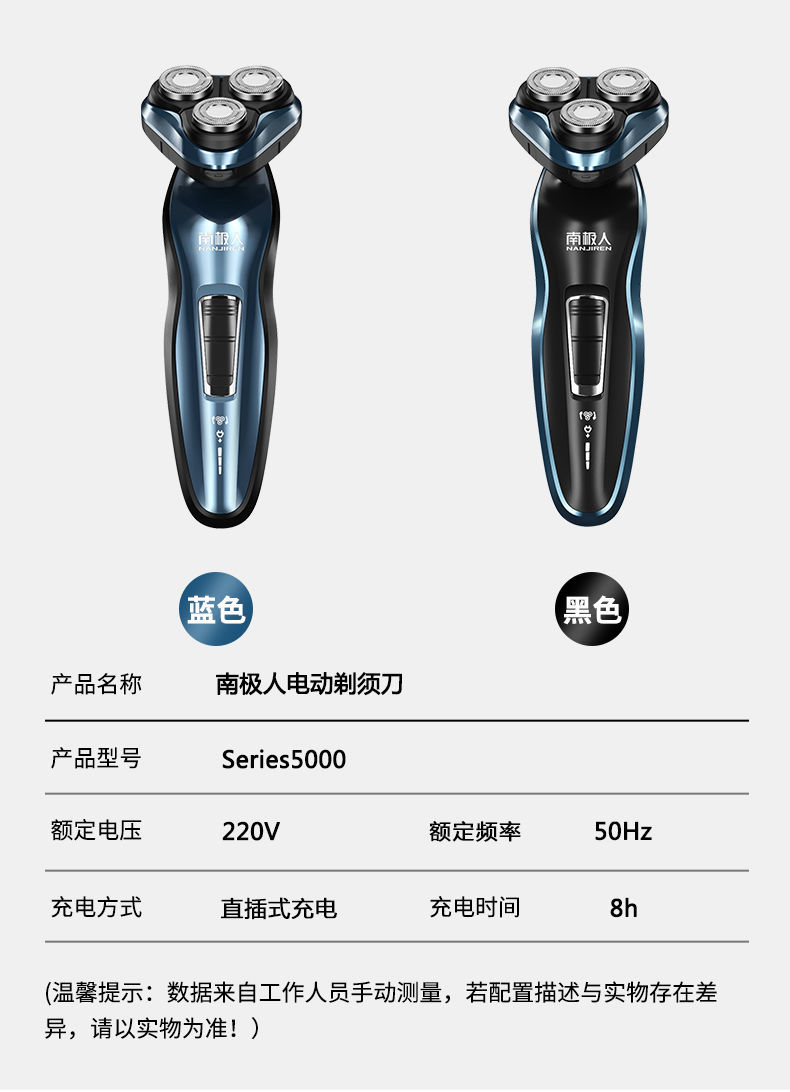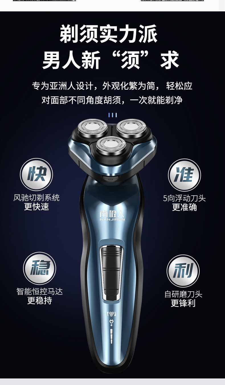 • 商品名称:南极人剃须刀电动刮胡刀男士充电式须刨胡须刀头水洗智能刮胡子刀