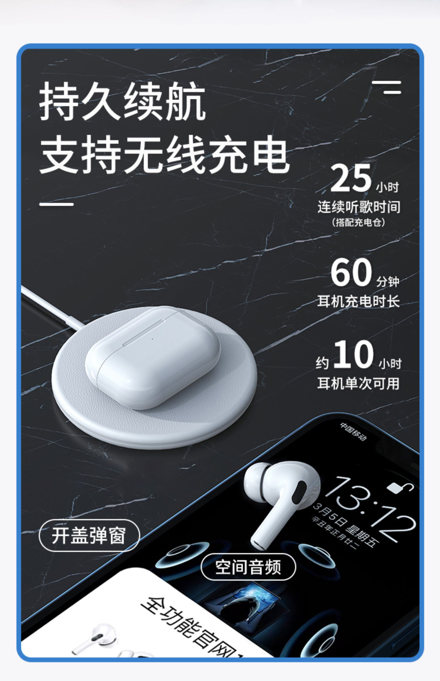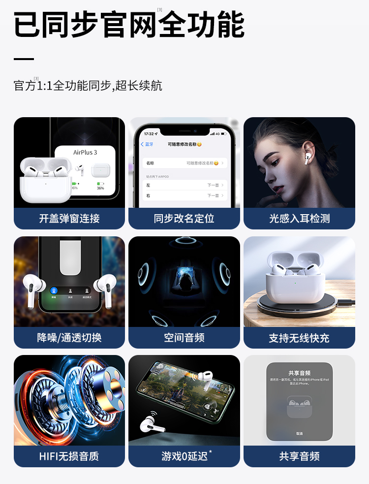 • 商品名称:真无线蓝牙耳机华强北适用苹果四代原装三代正品iPhone13入耳式2021年新款3高端2官方4洛达1562a二代ANC降噪
