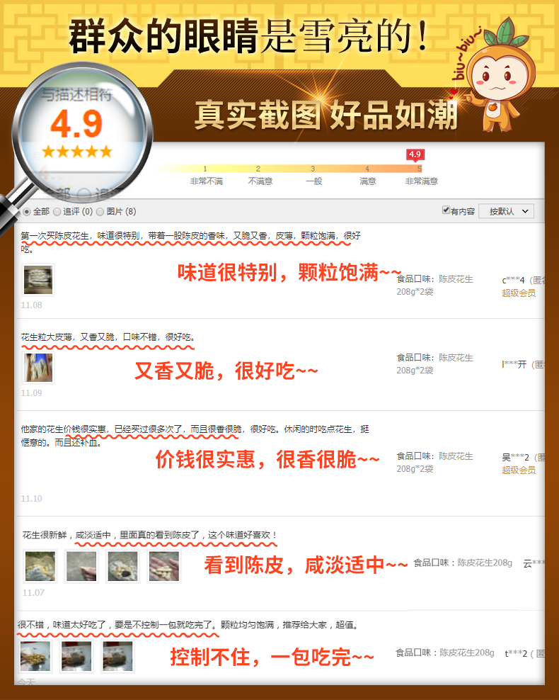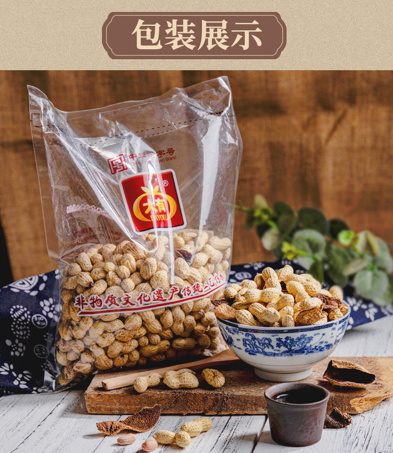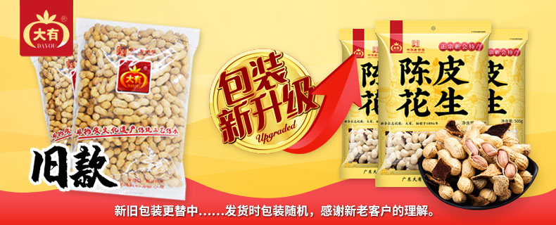 • 商品名称:大有陈皮花生500g广东江门新会特产咸干花生零食水煮干花生带壳