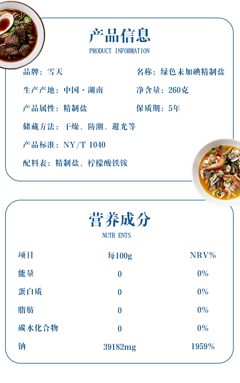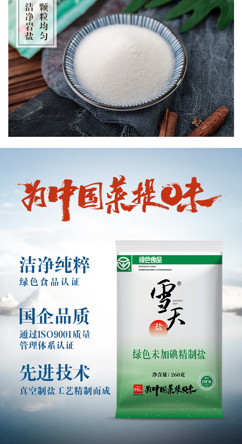 • 商品名称:A包邮商品雪天食盐未加碘精制盐260g*9包家用无碘深井细盐调料盐