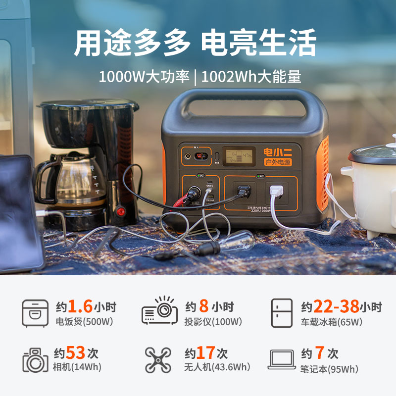 电小二户外电源1000W大功率220V应急电源自驾便携大容量停电备用