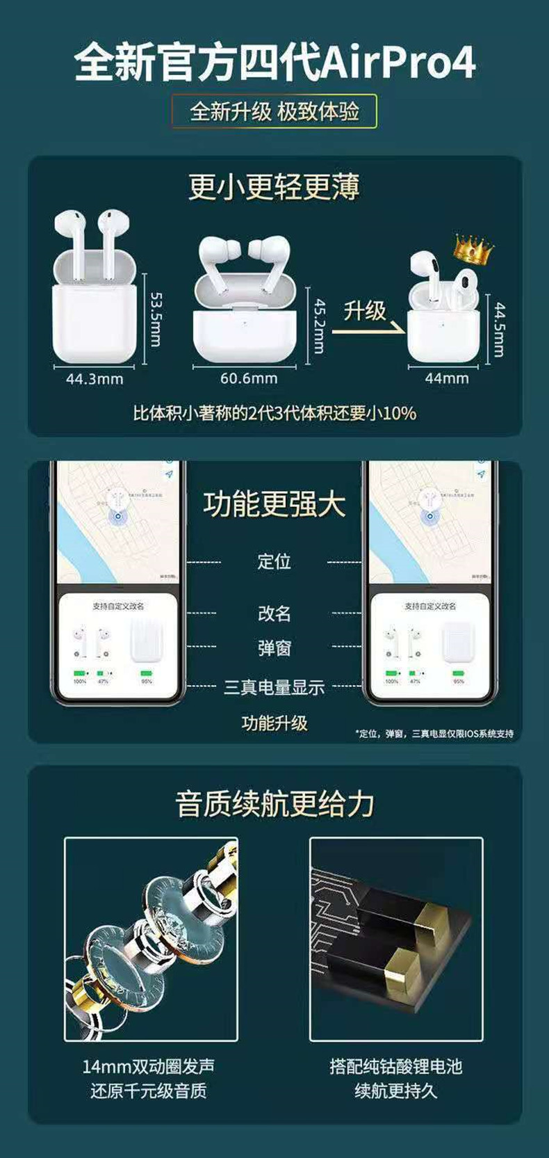 • 商品名称:原装正品4代华强北降噪蓝牙耳机适用vivo华为oppo苹果安卓通用14