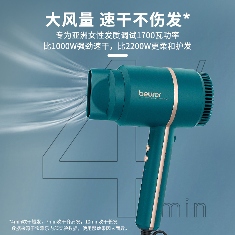 • 商品名称:beurer宝雅乐电吹风机家用负离子护发速干吹风筒不伤发防毛躁HC35