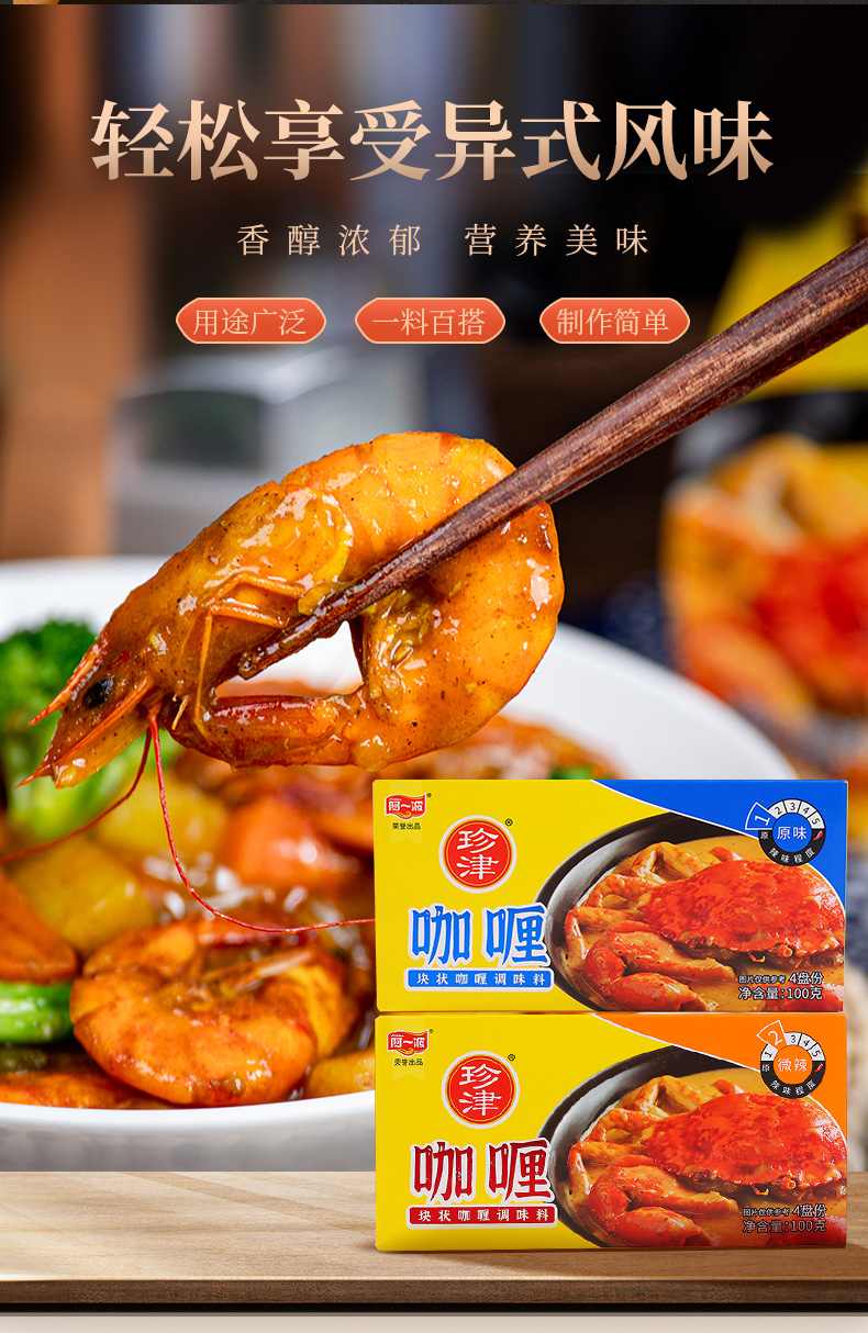 • 商品名称:阿一波珍津咖喱块100g×3盒 咖喱酱儿童咖喱鱼蛋饭料理调味料